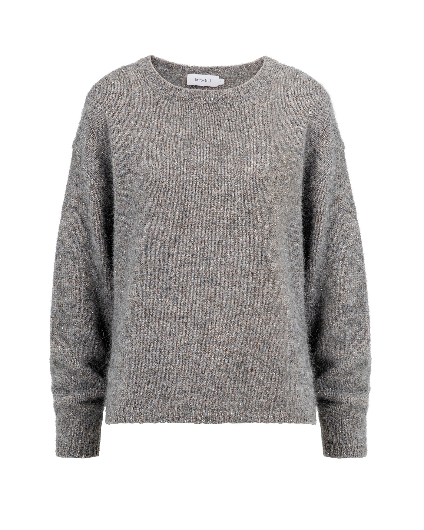 Gebreide trui met een ronde hals, gemaakt van een zachte glinsterende blend met alpaca wol.