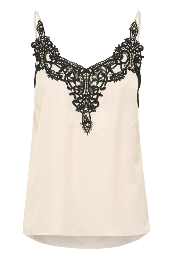 A-lijn top met verstelbare schouderbandjes en bij de hals afgewerkt met borduursel.