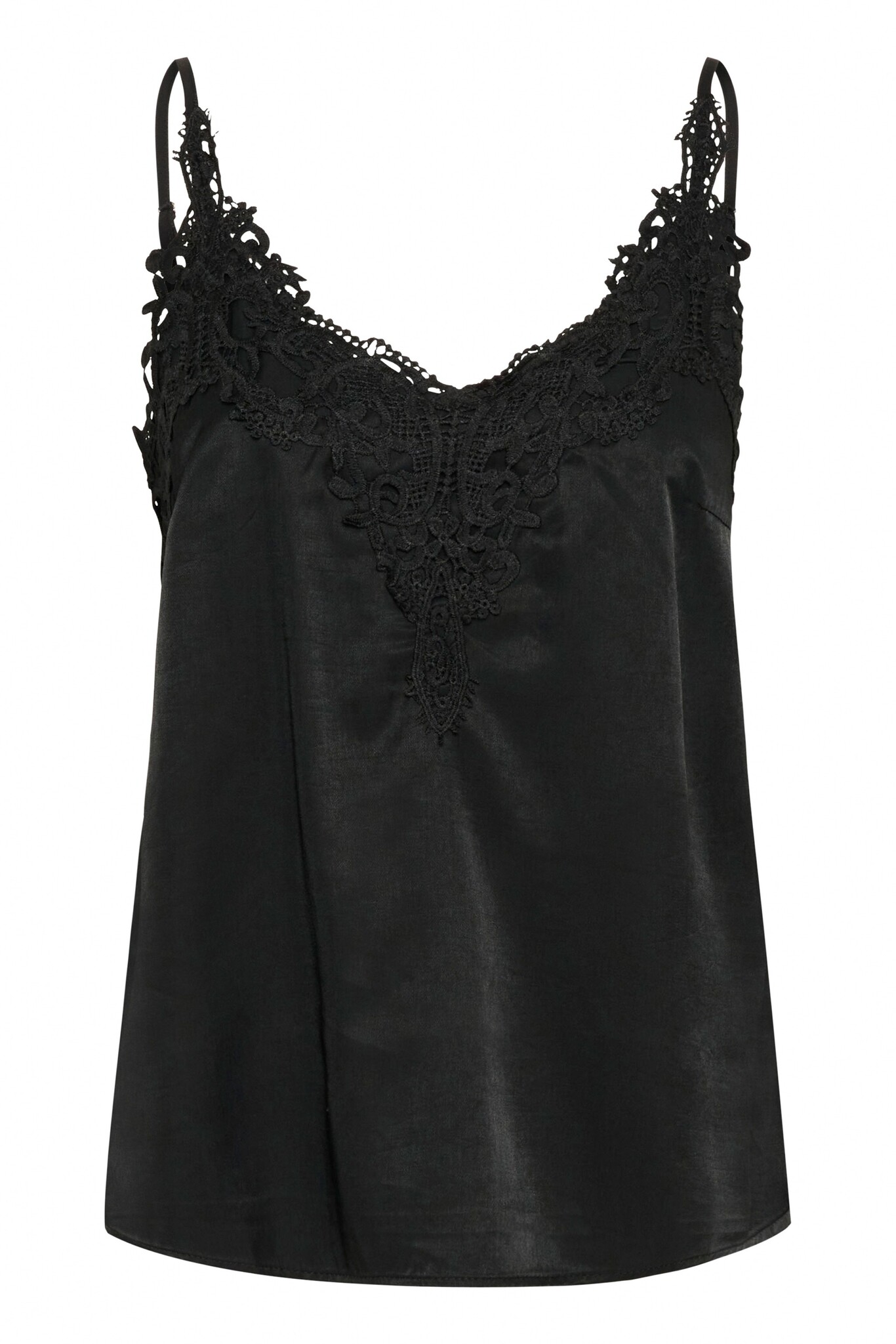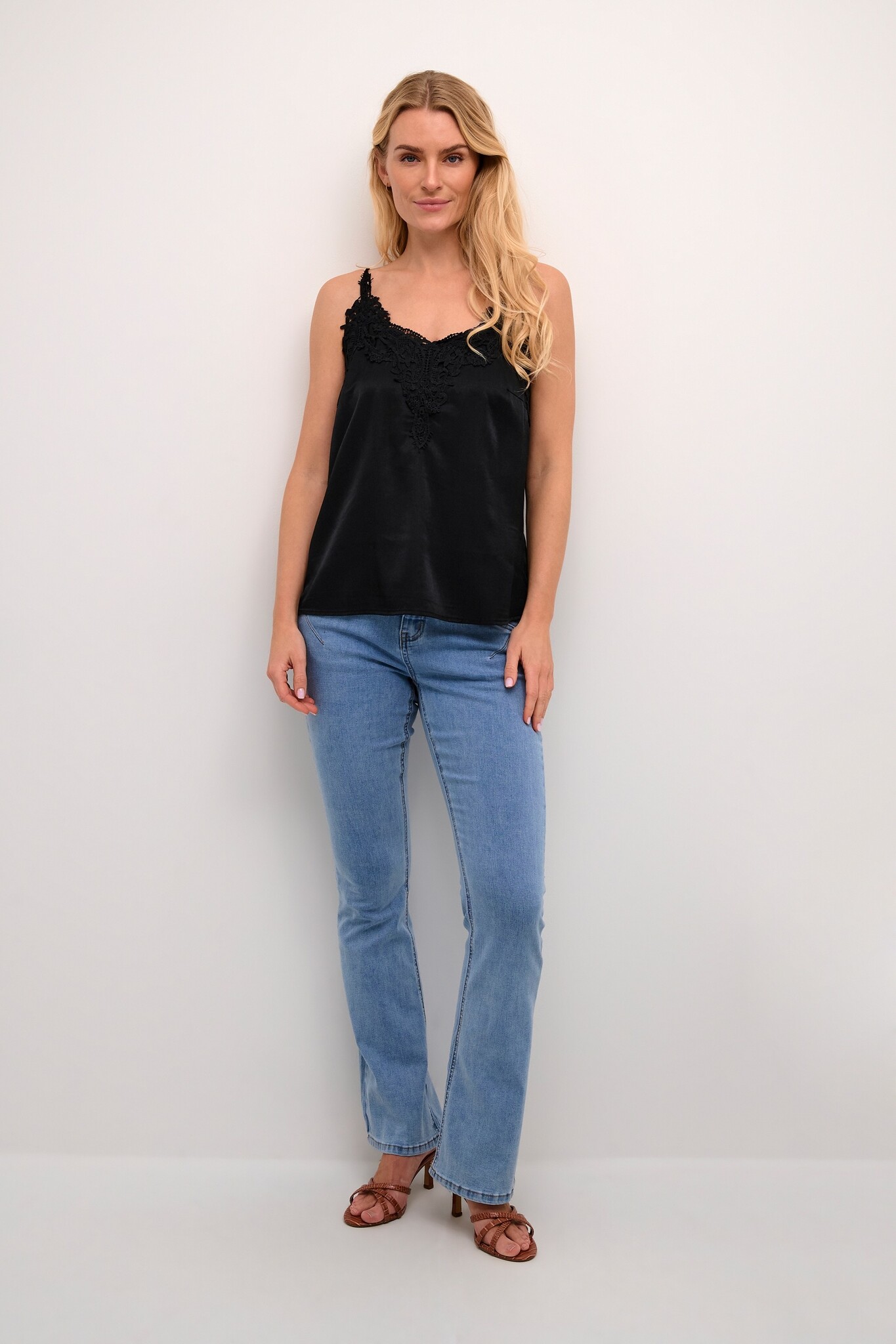 A-lijn top met verstelbare schouderbandjes en bij de hals afgewerkt met borduursel.
