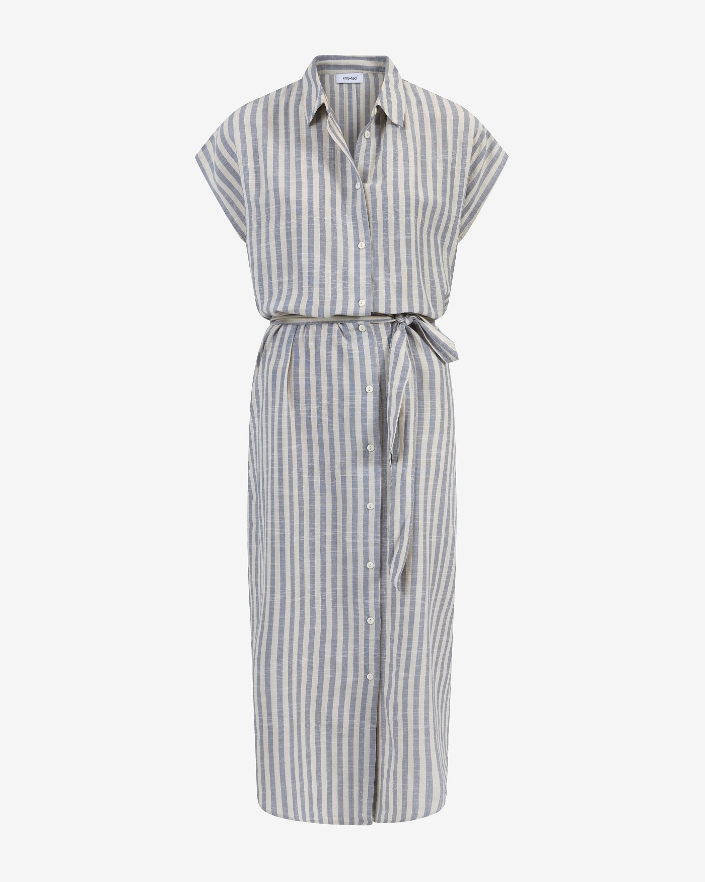 • Lange soepel vallende overhemd jurk met korte mouwen en een bijpassende ceintuur, gemaakt van een ademende mix van viscose en katoen.