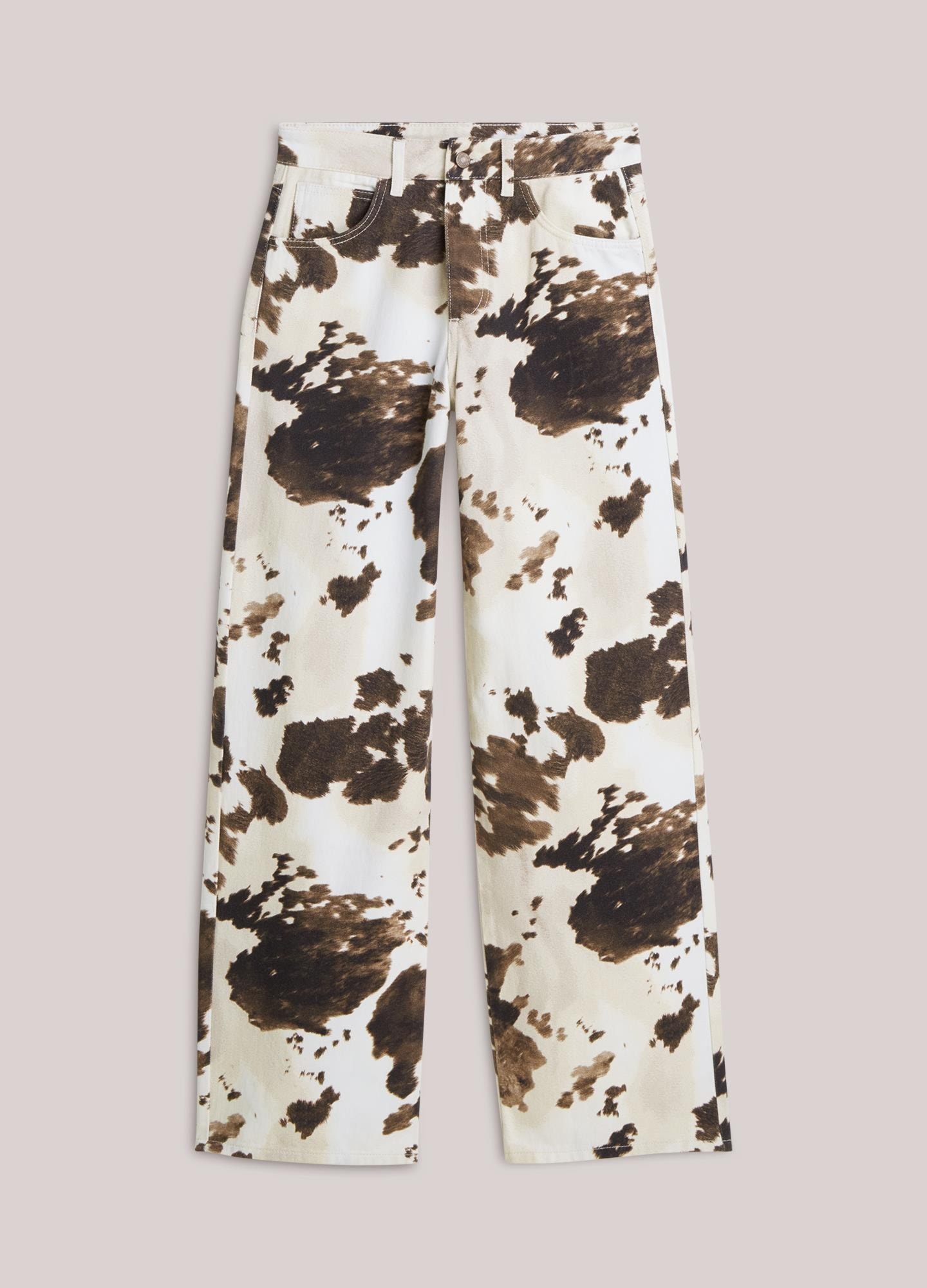 Baggy fit katoenen 5-pocket jeans in een koeienprint.