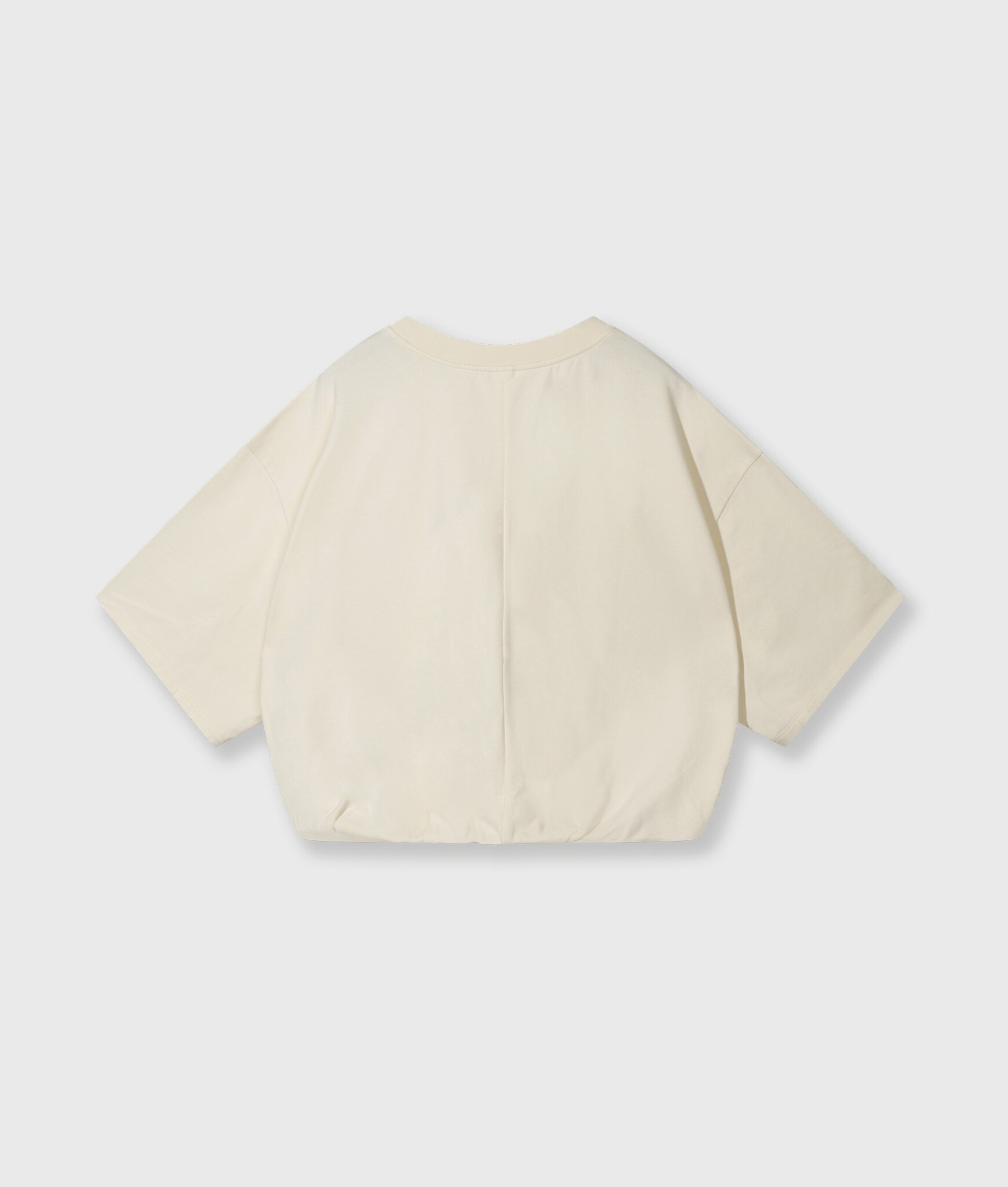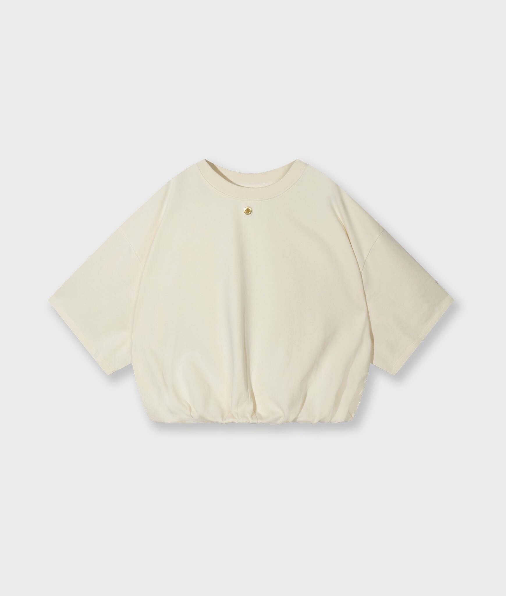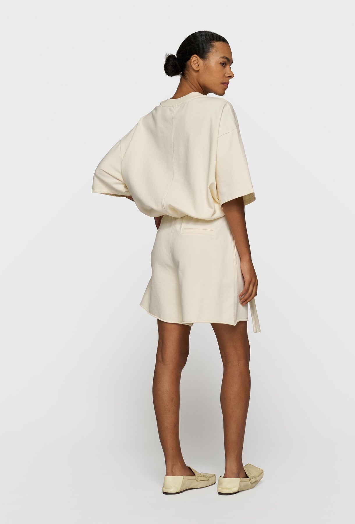 Oversized sweater met wijde halflange mouwen, gemaakt van een superzachte jersey stof. De trui heeft verlaagde schouders, een ronde hals met daaronder een goudkleurige eyelet en een elastische band aan de onderkant voor een licht opgeblazen effect.