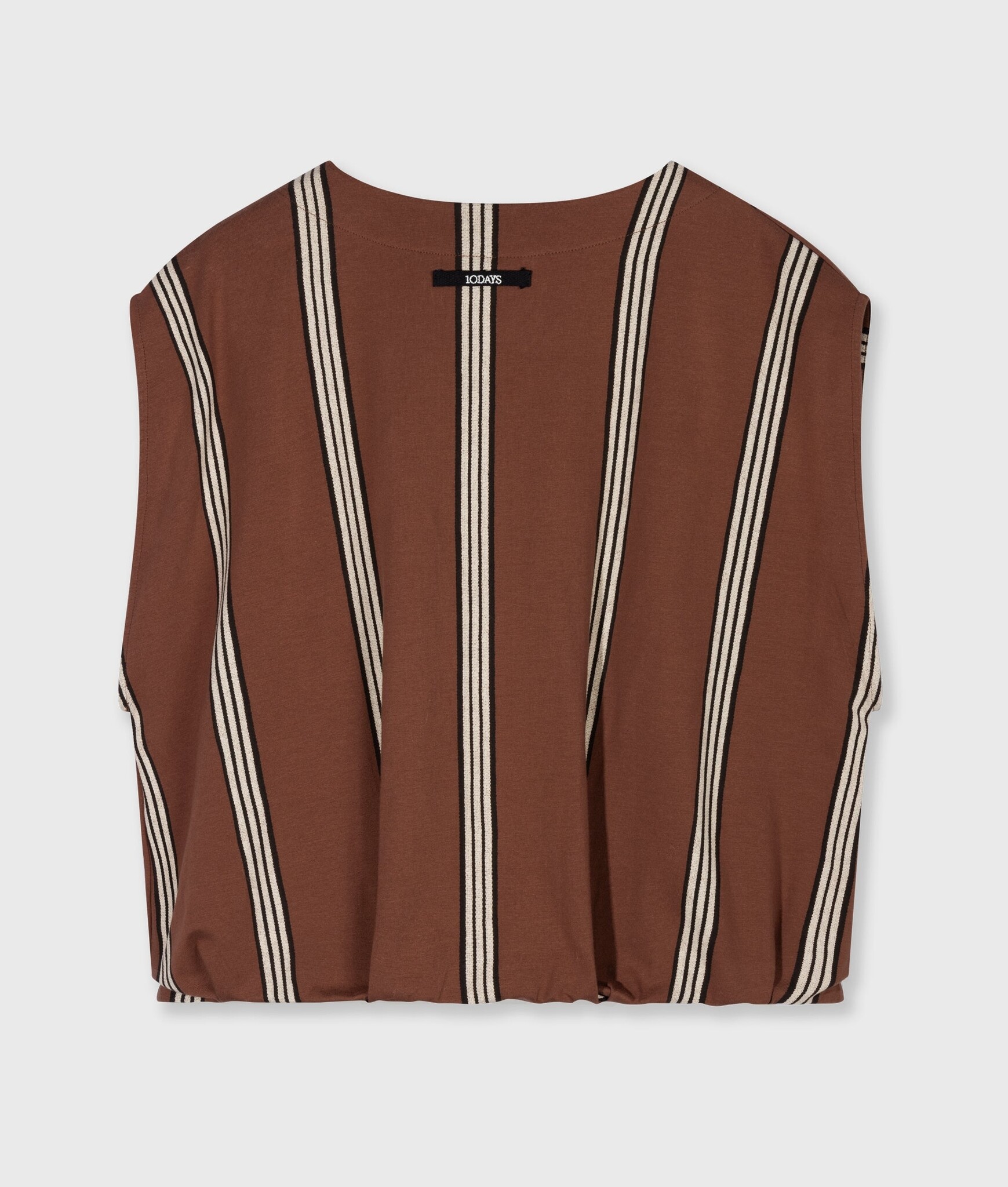 Oversized gestreepte ballon top, gemaakt met zachte biologisch katoenen jersey. De top heeft een ronde hals met een split, een geplooide elastische zoom en een ‘10DAYS’ label in de nek.