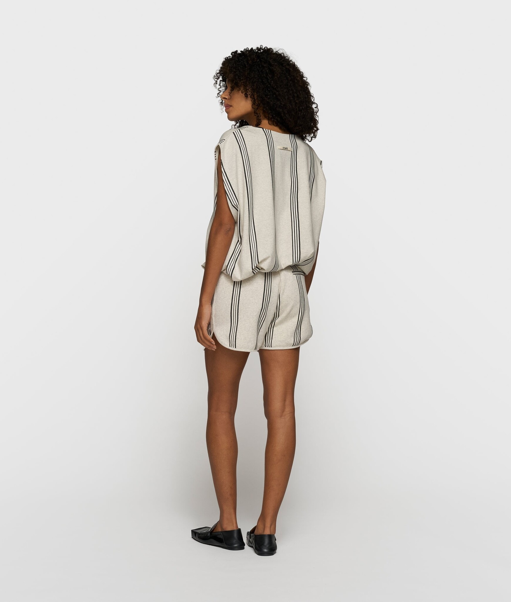 Oversized gestreepte ballon top, gemaakt met zachte biologisch katoenen jersey. De top heeft een ronde hals met een split, een geplooide elastische zoom en een ‘10DAYS’ label in de nek.