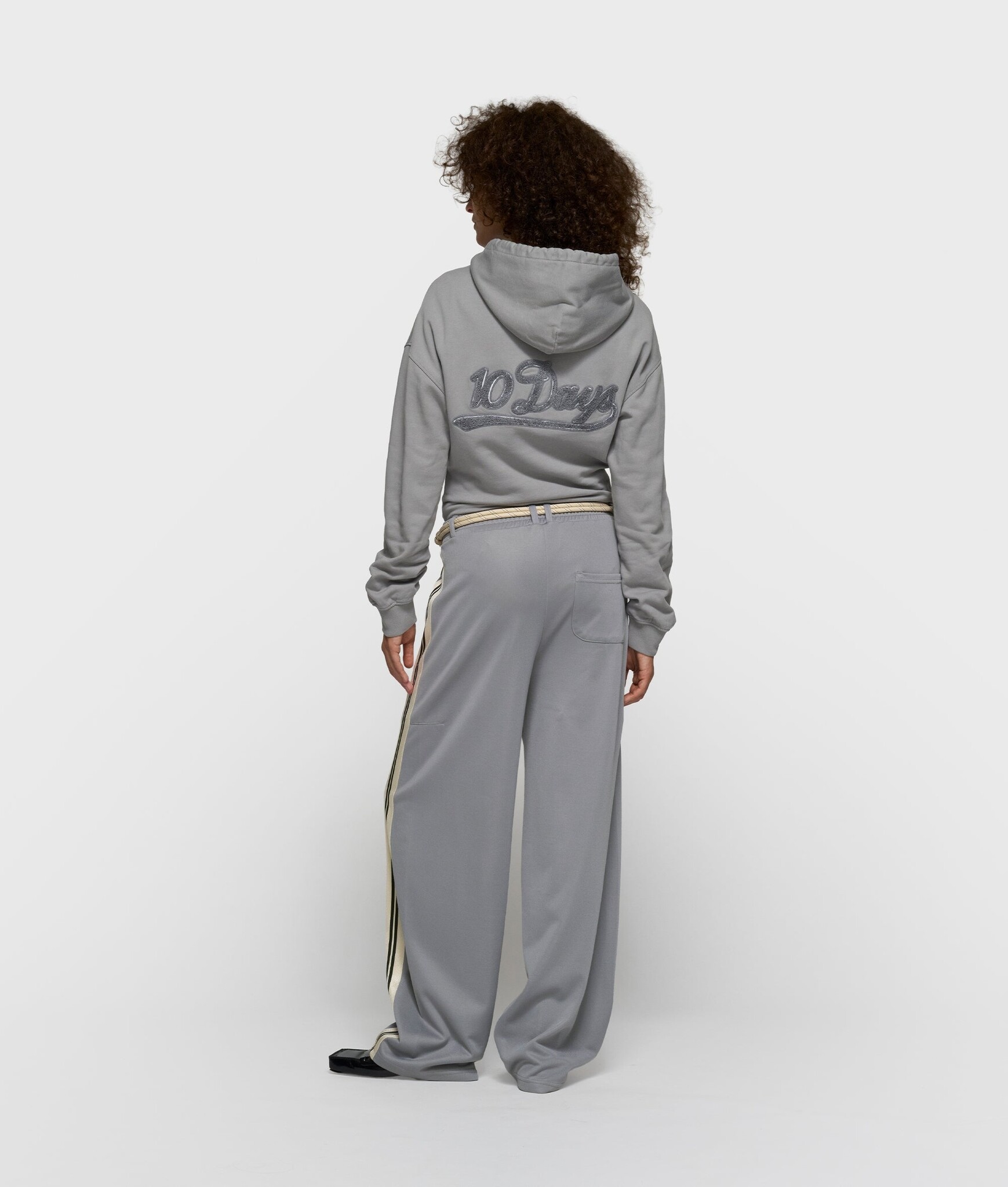 Comfortabele relaxed fit pantalon met wijde pijpen gemaakt van zacht, gewassen grijs denim. De broek heeft een tailleband met klassieke riemlussen en een verstelbare riem met metalen gesp, zijzakken, een achterzak en een 'curly 10' logo op de linker pijp.