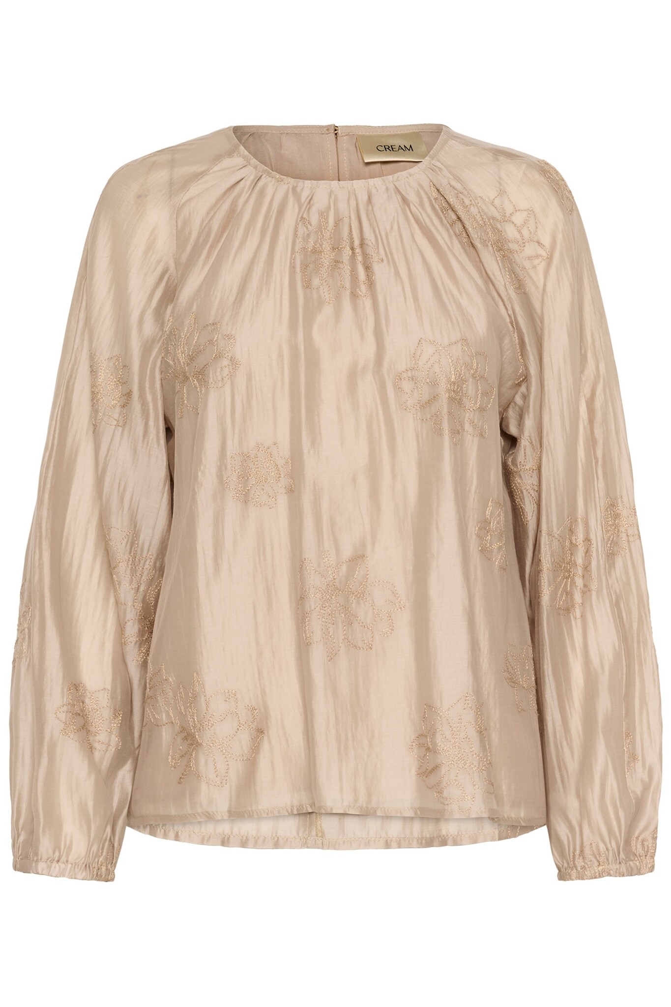 Regular fit doorschijnende blouse met ballonmouwen en plooien. De blouse is gevoerd en versierd met borduursel.