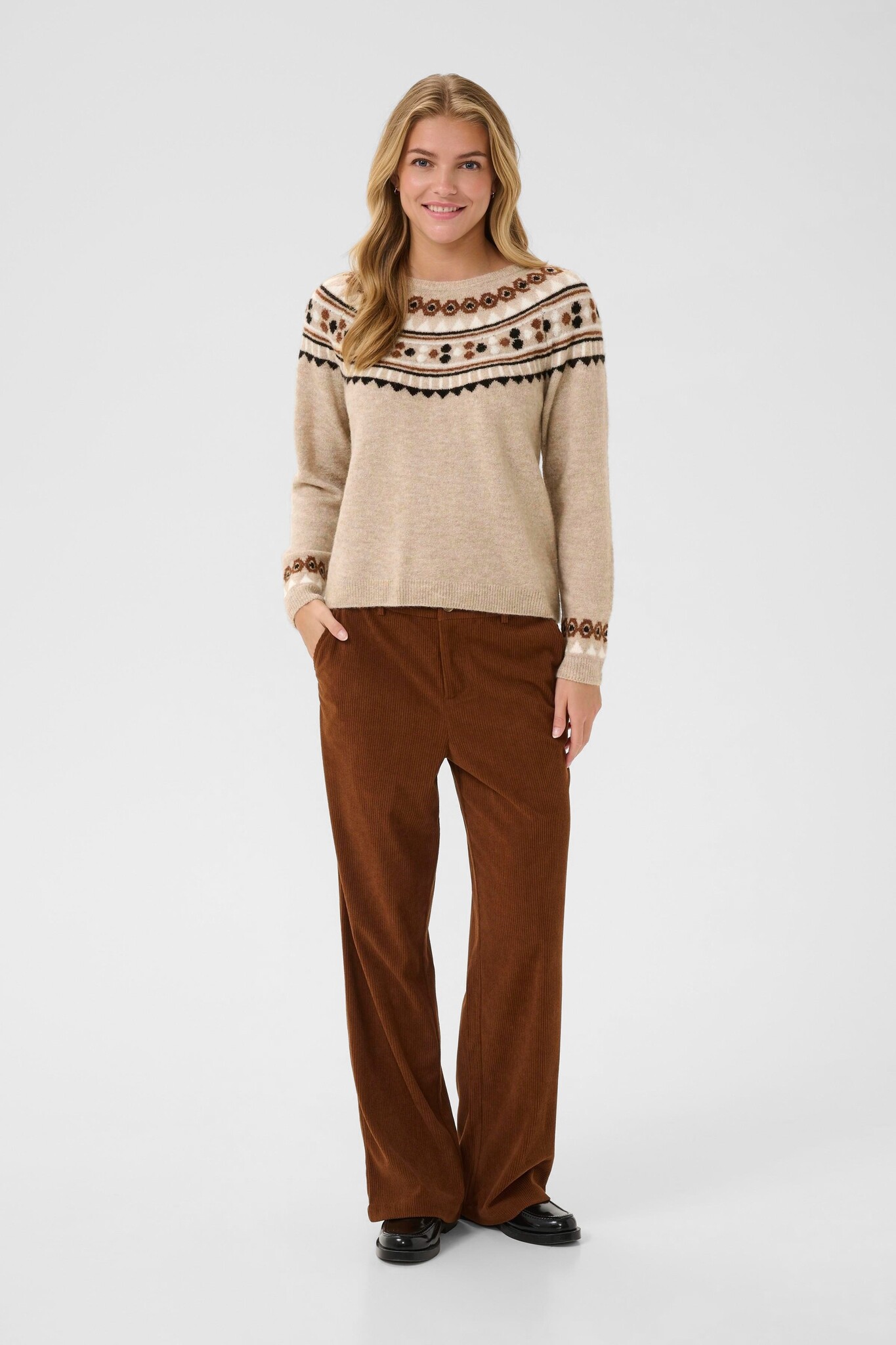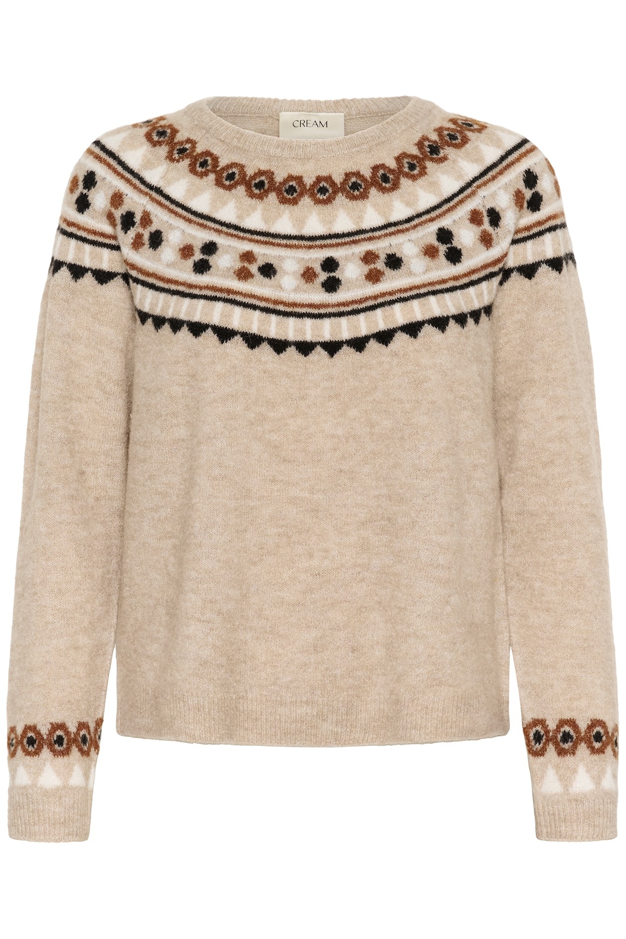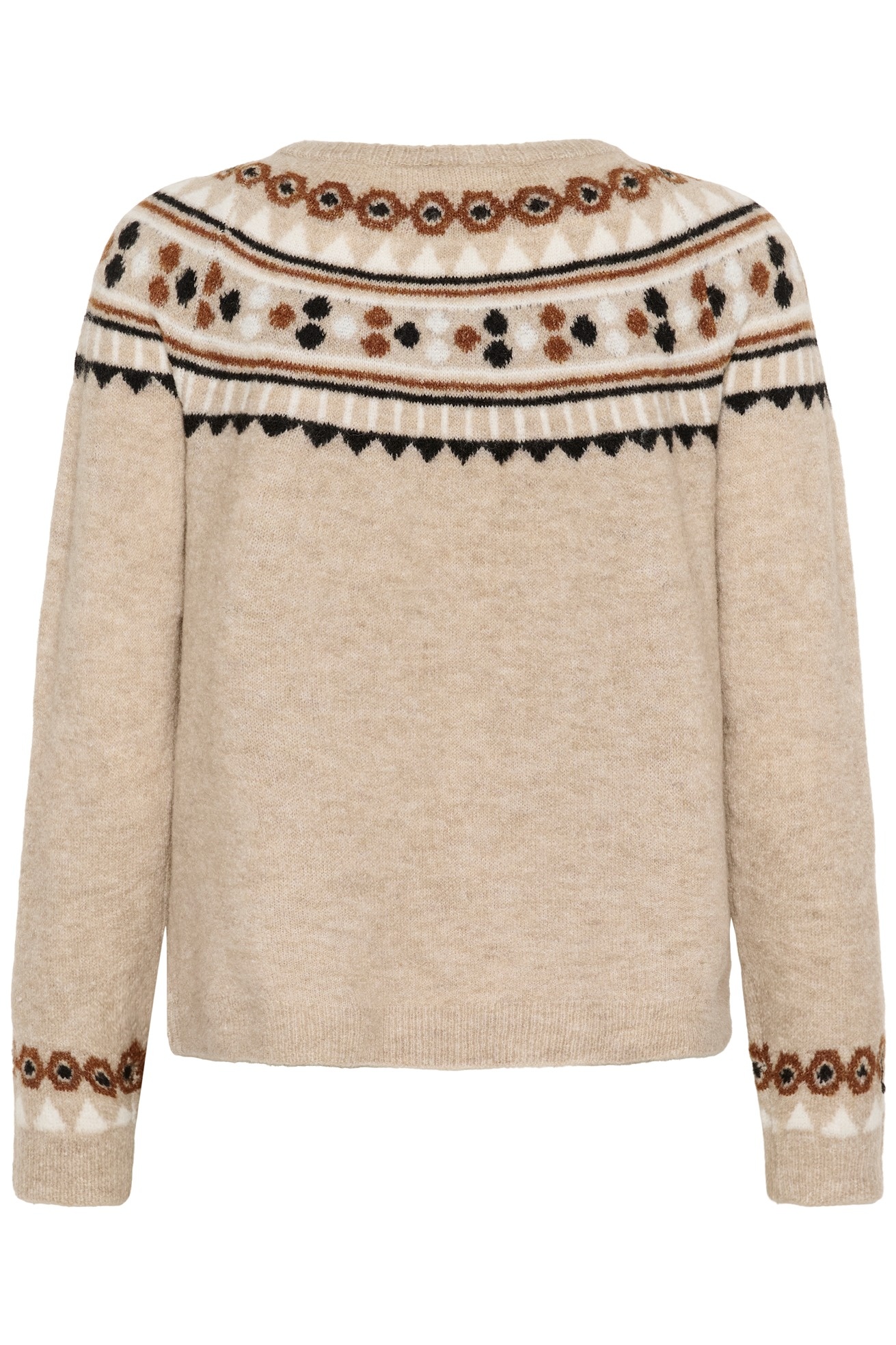 Loose fit gebreide trui versierd met een speels patroon. De trui heeft een ronde hals, lange mouwen en een comfortabele, losse pasvorm.