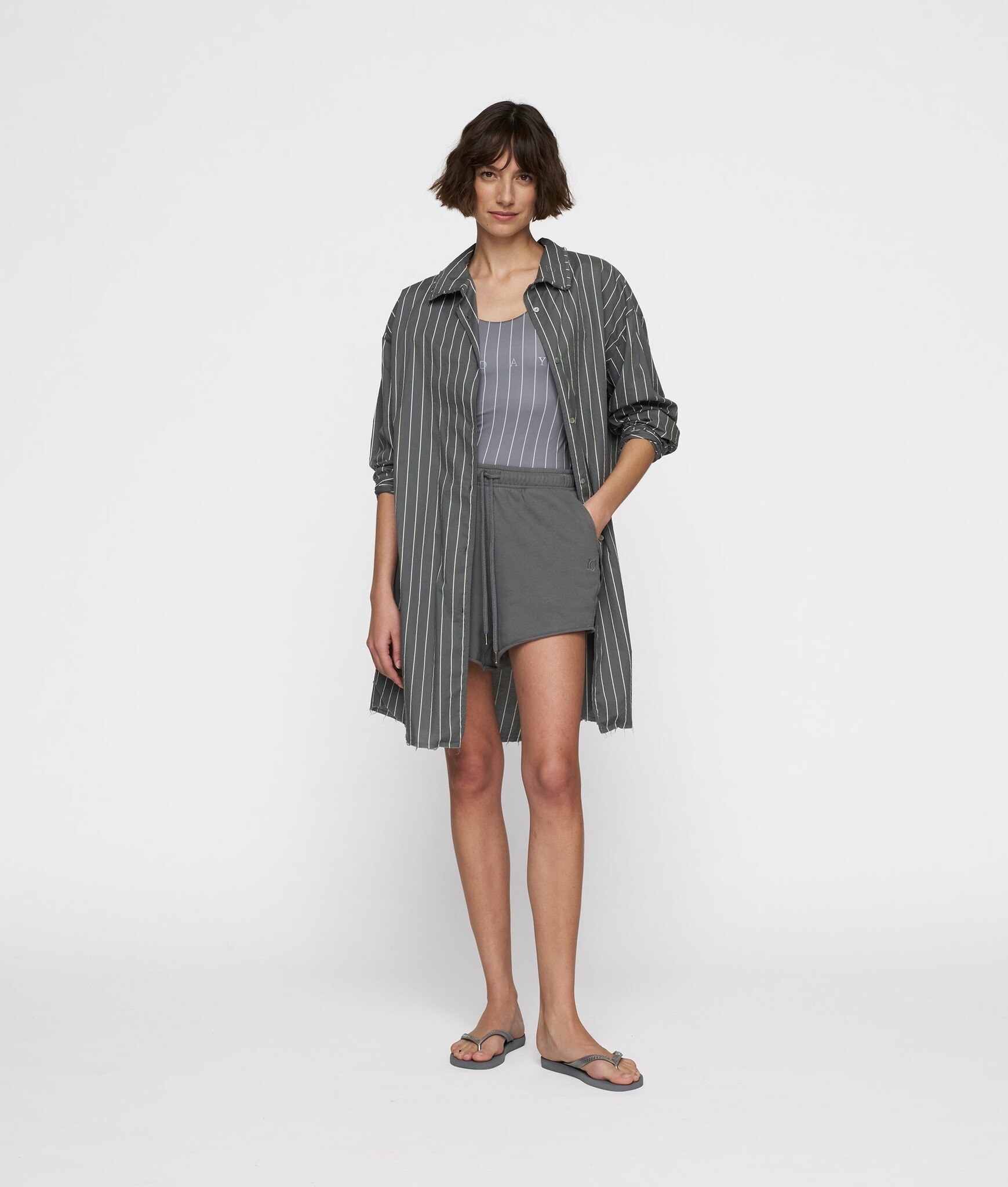 Regular fit korte broek, gemaakt van biologisch katoenen brushed fleece. De shorts heeft een elastische tailleband met trekkoord, raw edge pijpen, schuine steekzakken, een fake achterzak en een geborduurd '10' monogram onder de linkerzak.