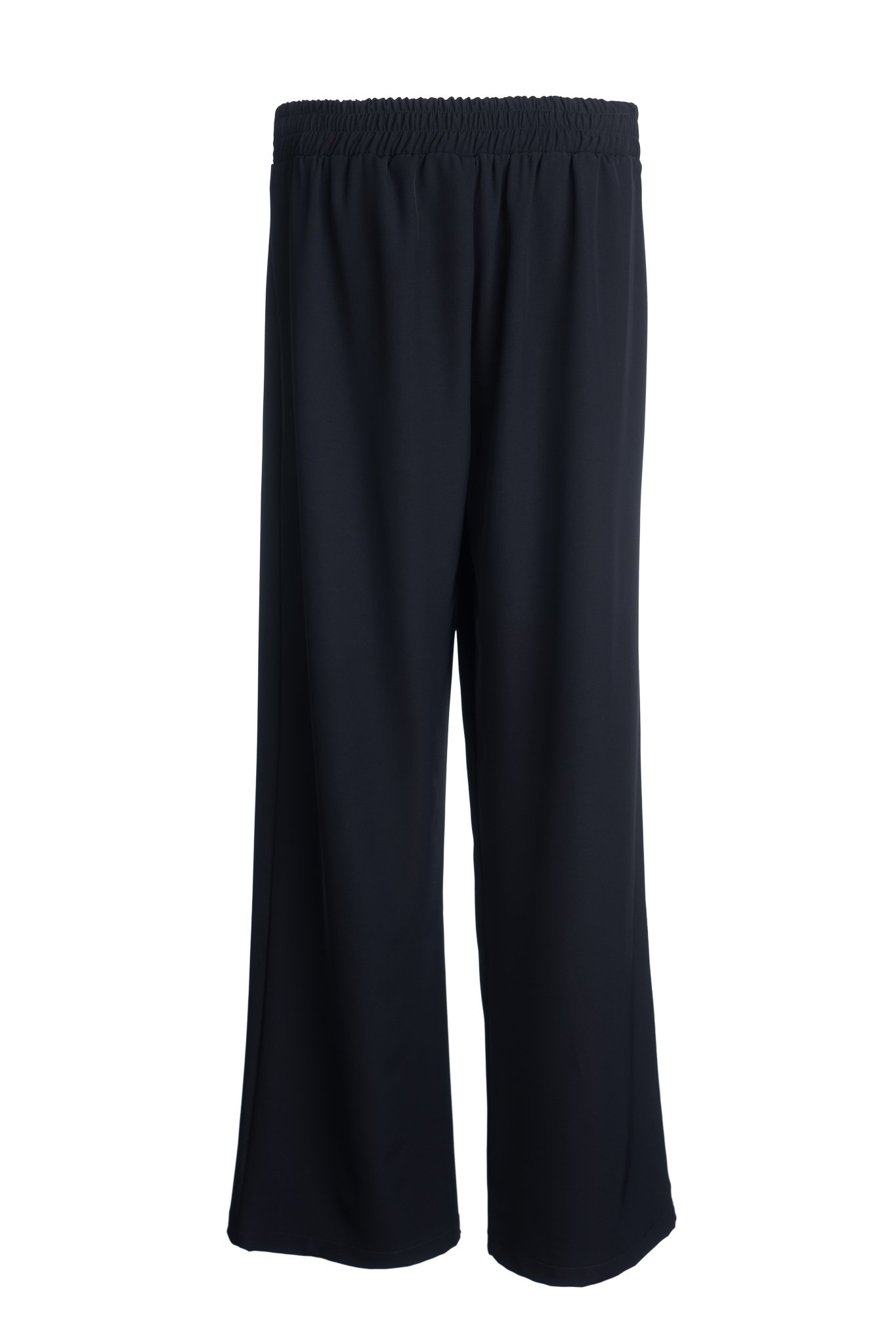 Wijdvallende broek met een gladde tailleband aan de voorkant en een elastische tailleband aan de achterkant.