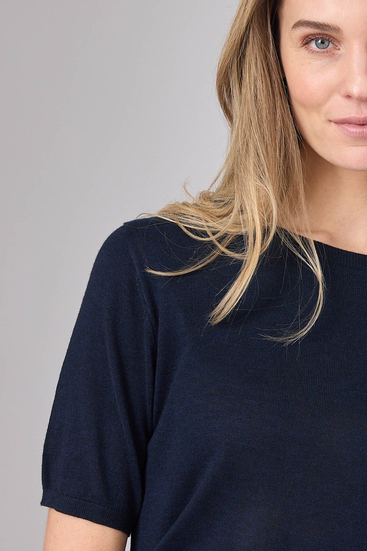 • Regular fit trui gemaakt van een fijn gebreide zachte wolmix. De trui heeft korte mouwen en een ribgebreide afwerking bij de ronde hals, de mouwen en de zoom.