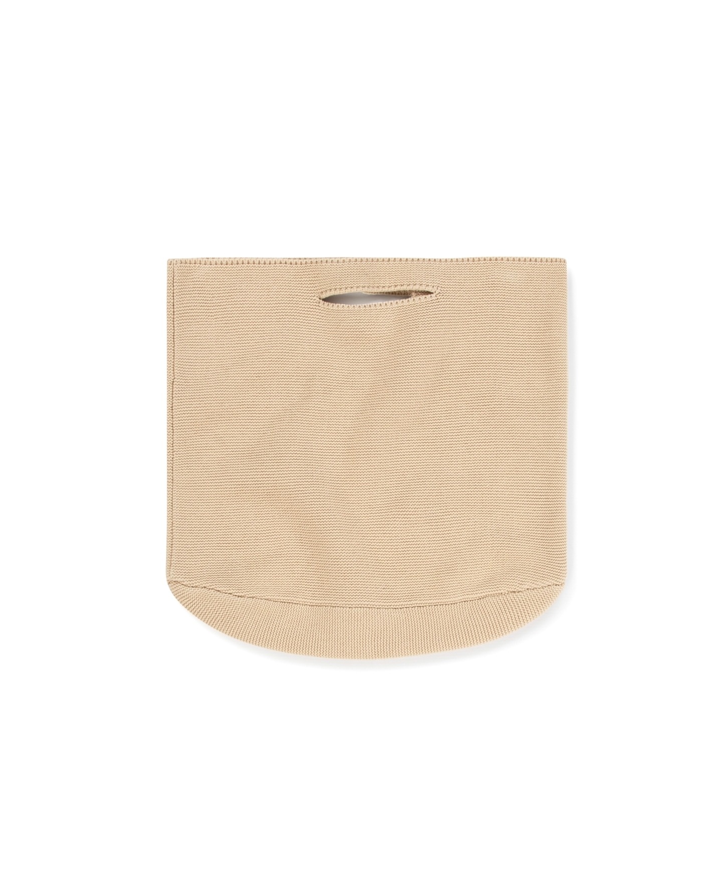 Gebreide tas met stretch waardoor hij zich aanpast aan de inhoud. Afmetingen: 42 x 44 cm.