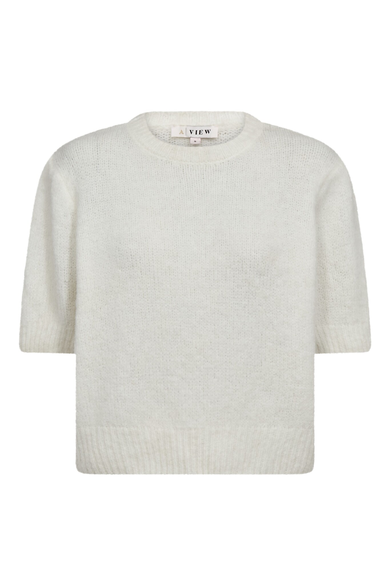 Relaxed fit zachte gebreide trui met een ronde hals en kleine ballonmouwen.