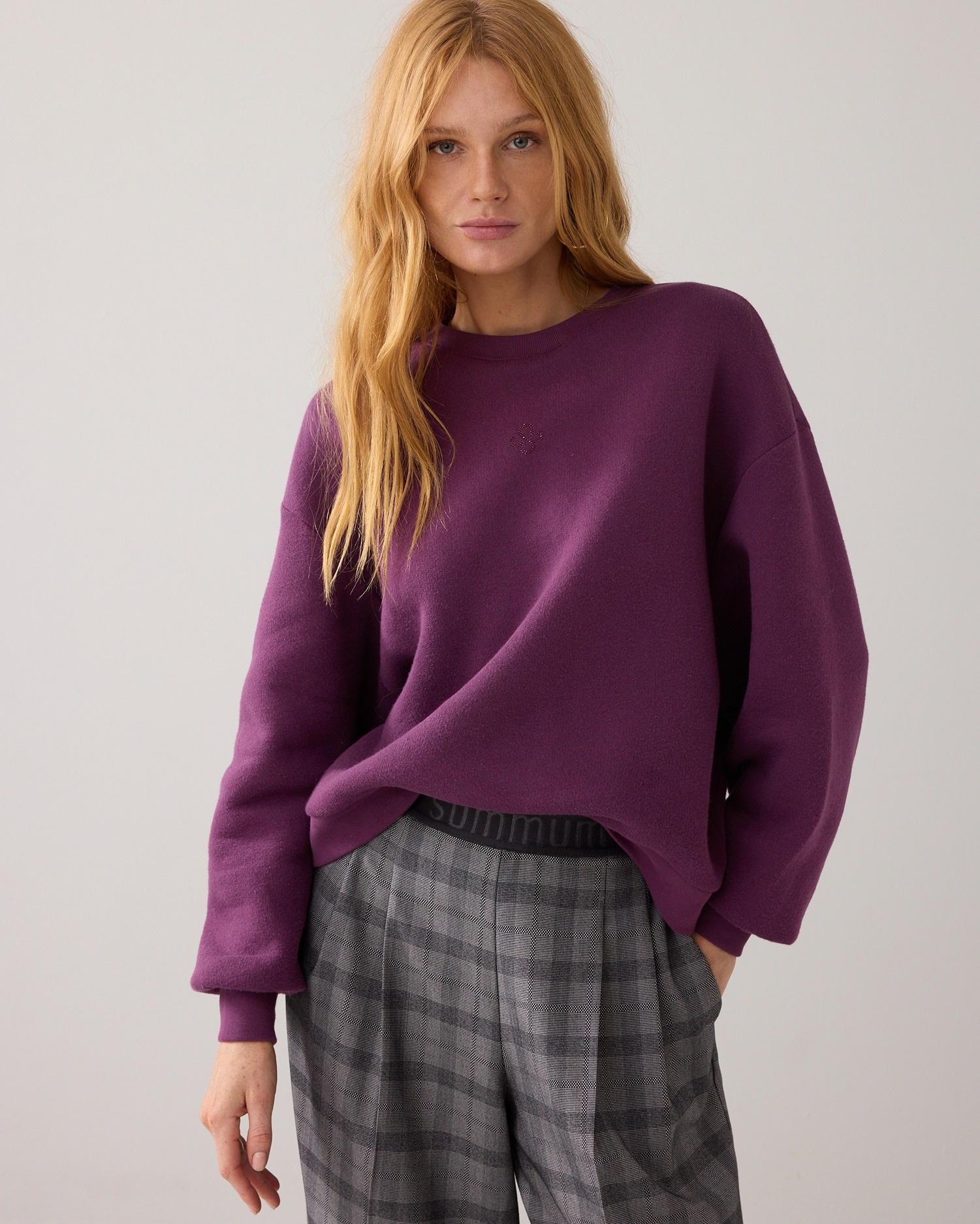 Casual fit zachte sweater versierd met het Summum-logo in een rubberachtige glimmende print op de voorkant. De trui heeft een ronde hals en lange mouwen.