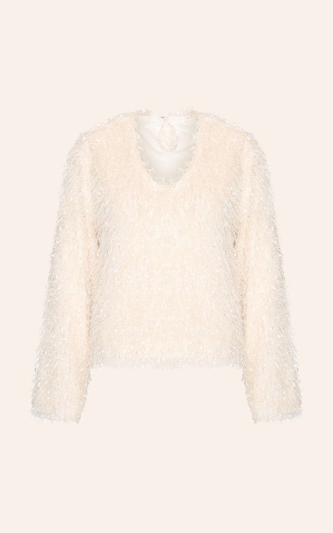 Feestelijke geplooide top met lange mouwen en een ronde hals, gemaakt van een fluffy tule stof.