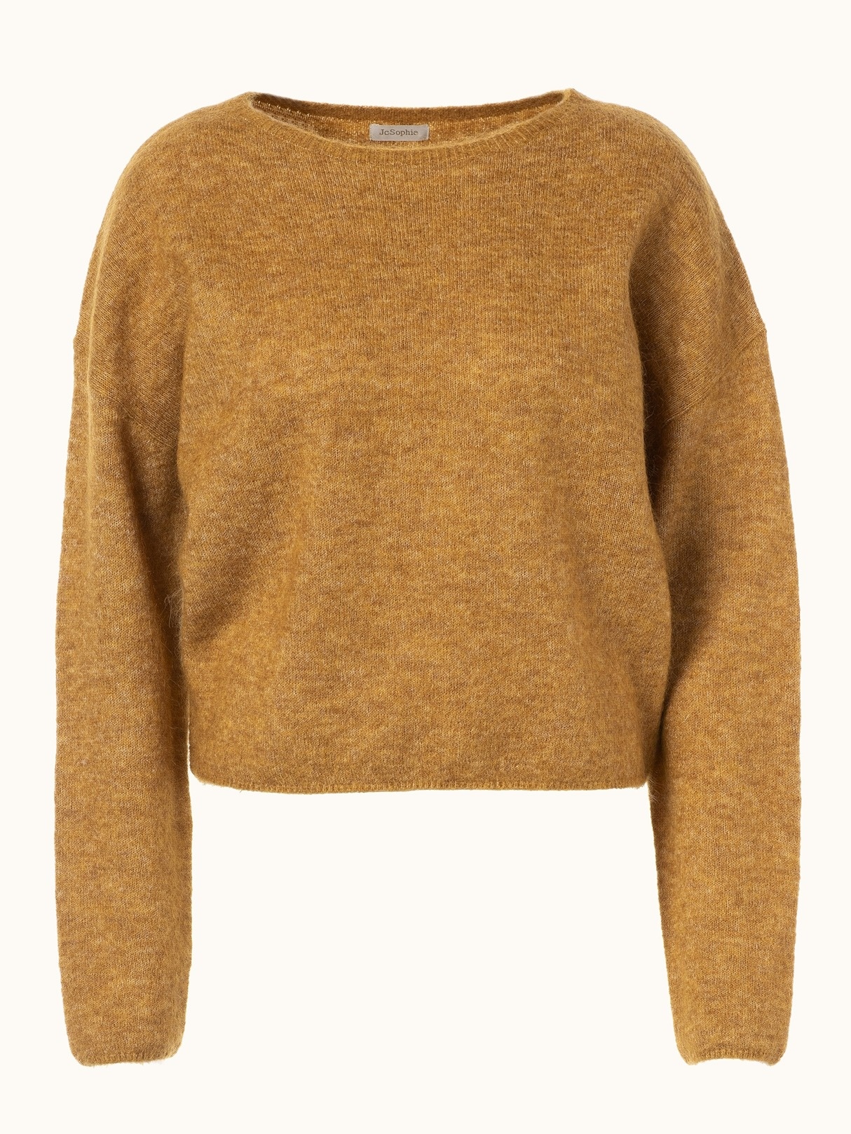 Zachte sweater met lange mouwen een brede ronde hals, gemaakt van een wolmix met mohair.