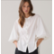 Ruimvallende geborduurde blouse met wijde mouwen en een verborgen knoopsluiting.