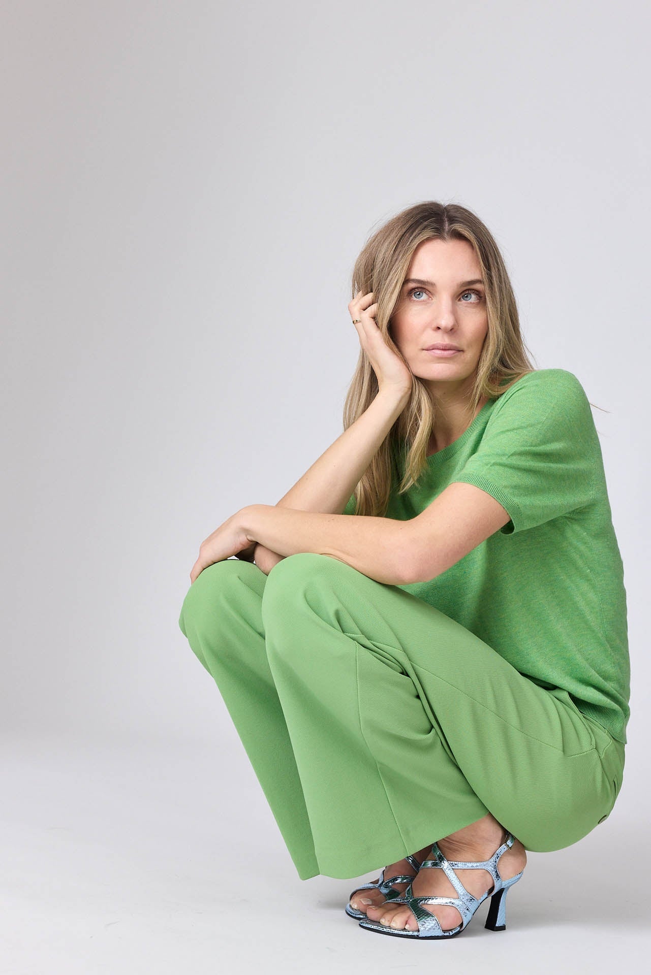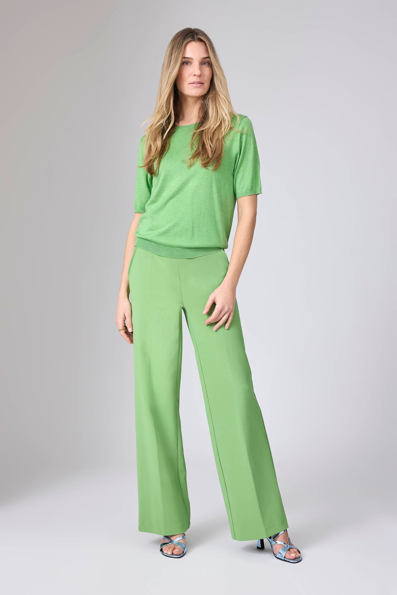 Taillebroek met rechte wijde pijpen, steekzakken en paspelzakken achter in een comfortable stevige jersey-stretchstof. Kijk voor meer foto's bij de Lilly broeken in andere kleuren.