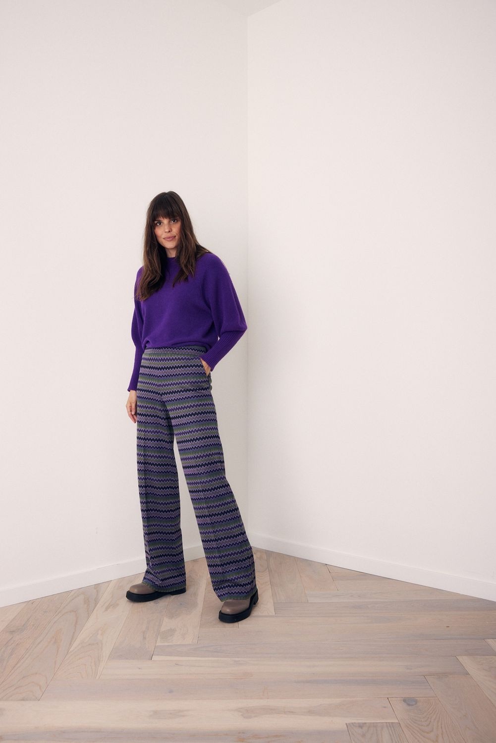 Broek met een elastische tailleband en wijde rechte pijpen, gemaakt van een comfortabele zachte jacquard stof met een lurex materialenmix.
