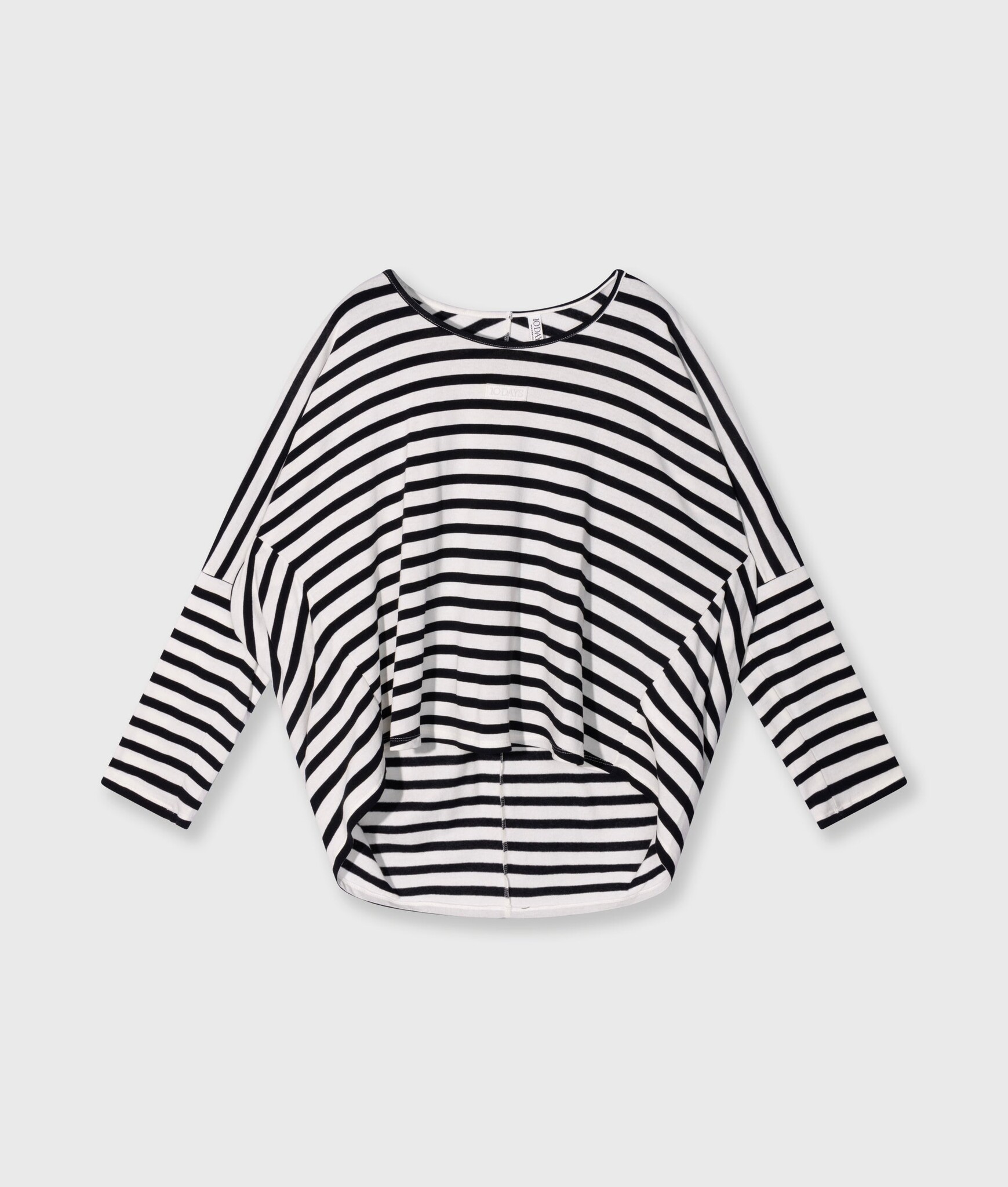 Loose long sleeve tee modal stripes ecru/black 10Days