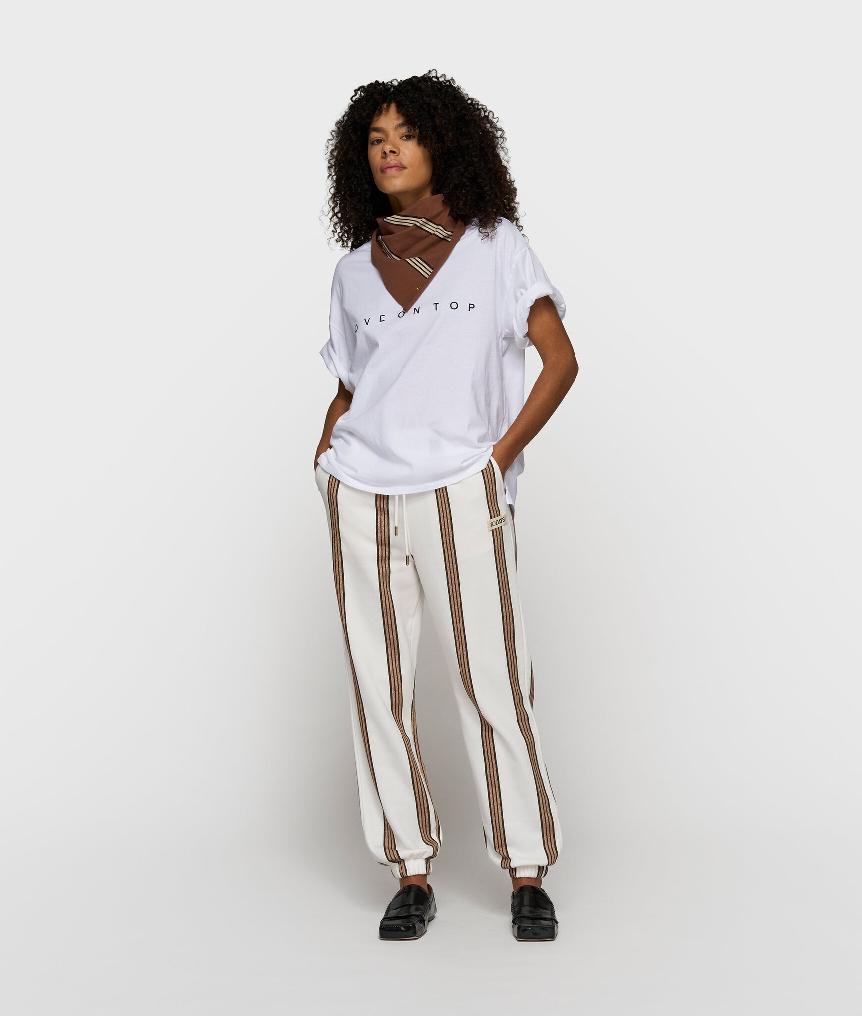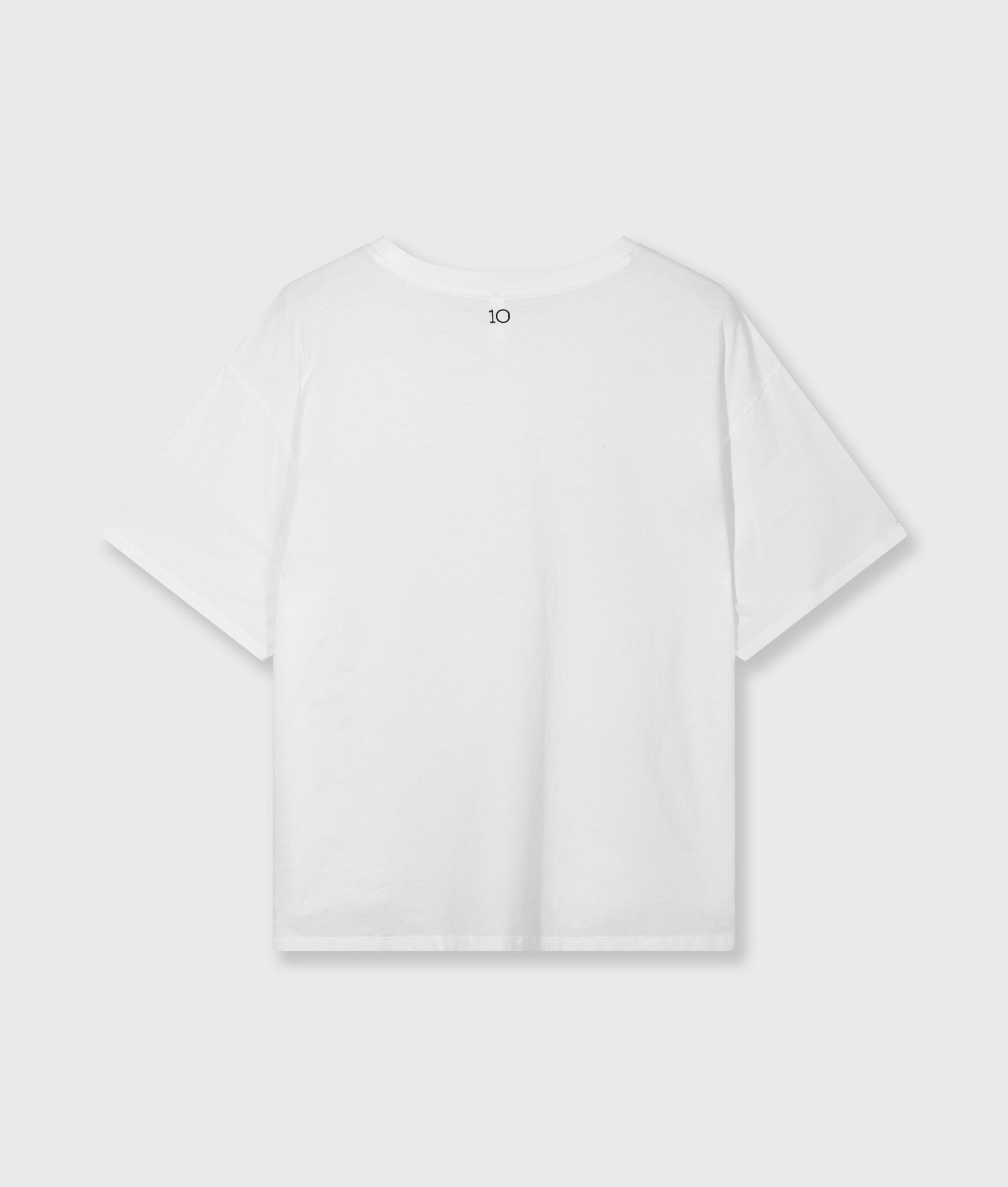 Zacht katoenen T-shirt met een oversized fit. De top heeft een ronde hals, een ‘love on top’ print op de voorkant, kleine zijsplitten en een geborduurd ‘10’ monogram op de rug.