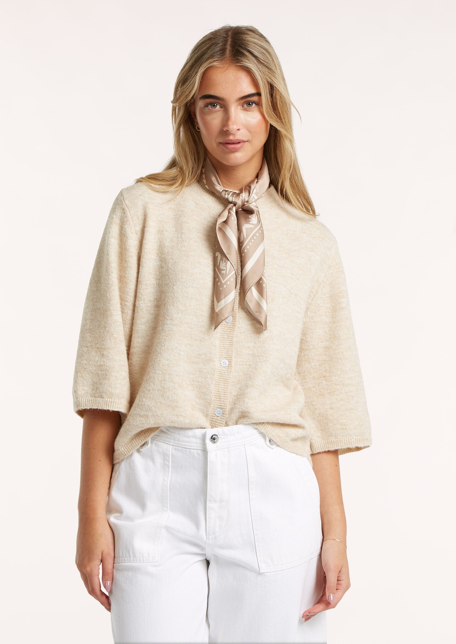 Loose fit gebreid vest met een rond hals, halflange mouwen en een knoopsluiting.