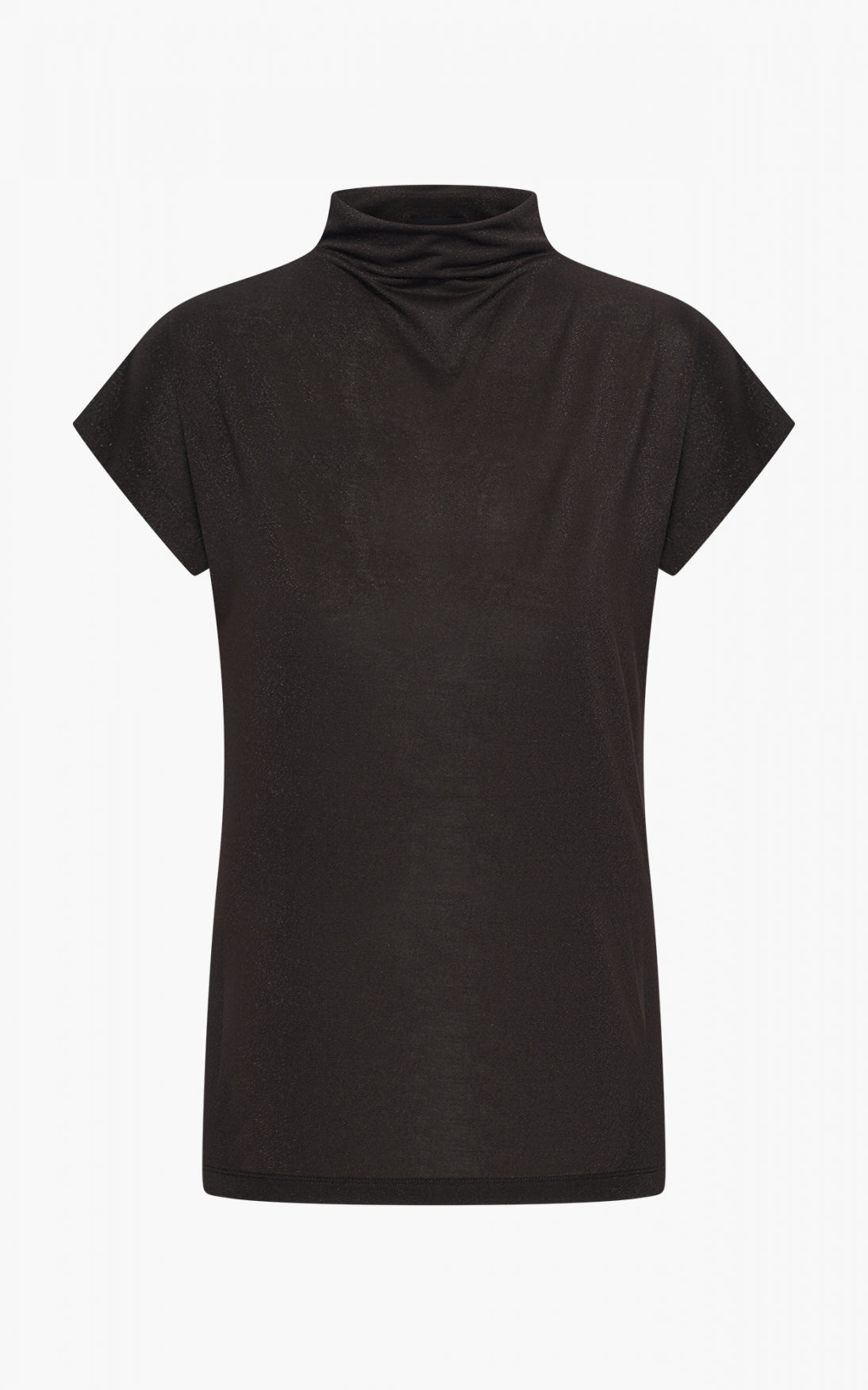 Loose fit korte mouwen top met een opstaande kraag, gemaakt van een glinsterende stretch stof.
