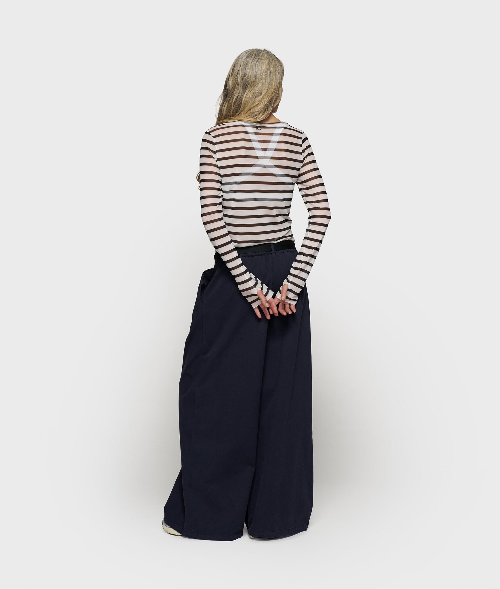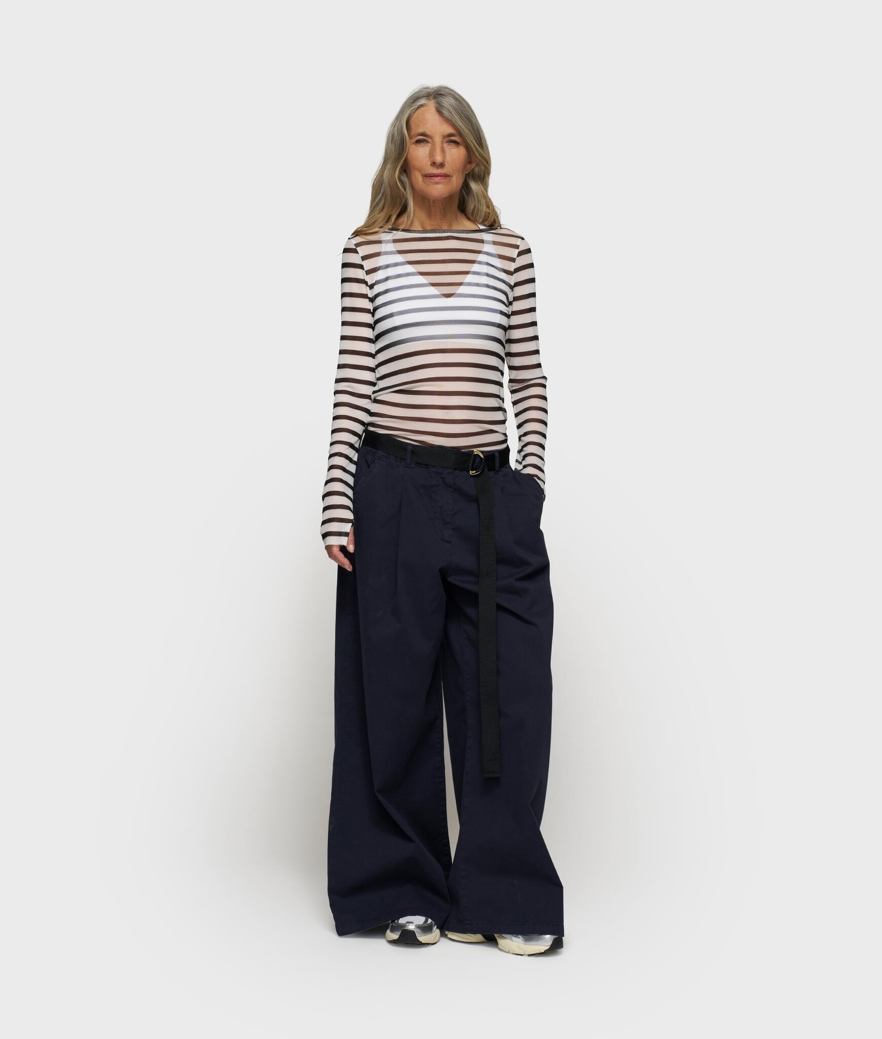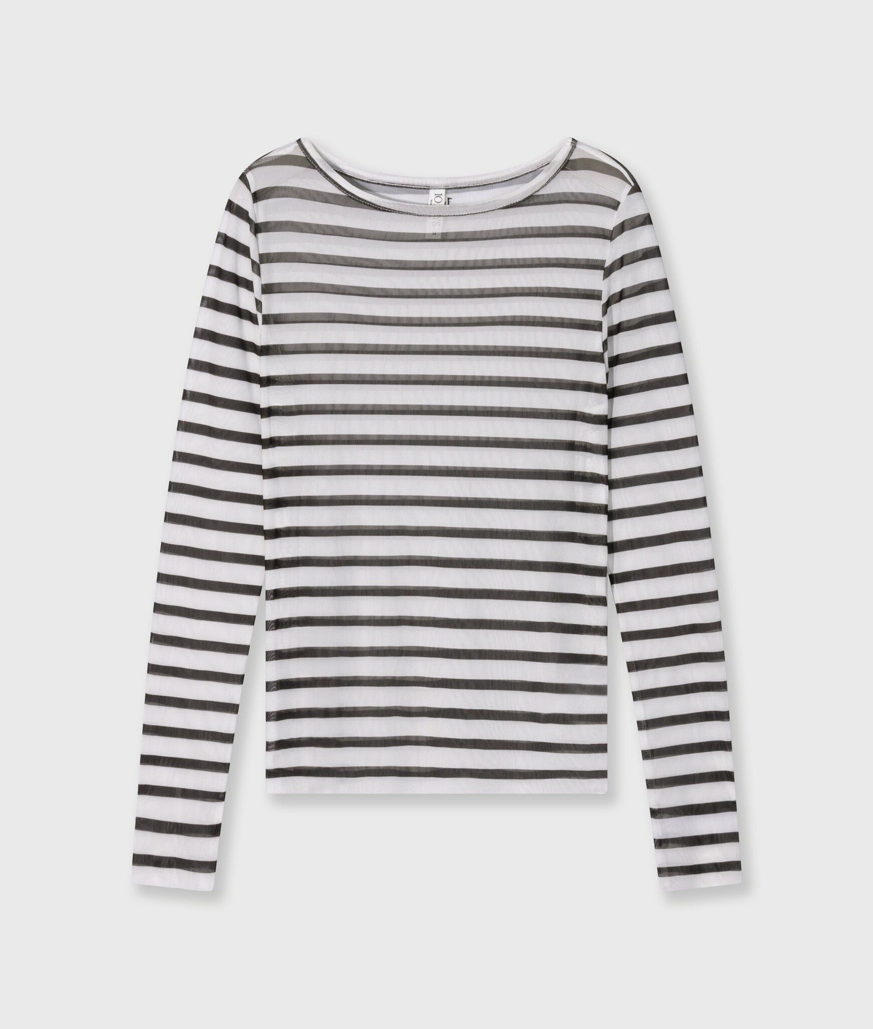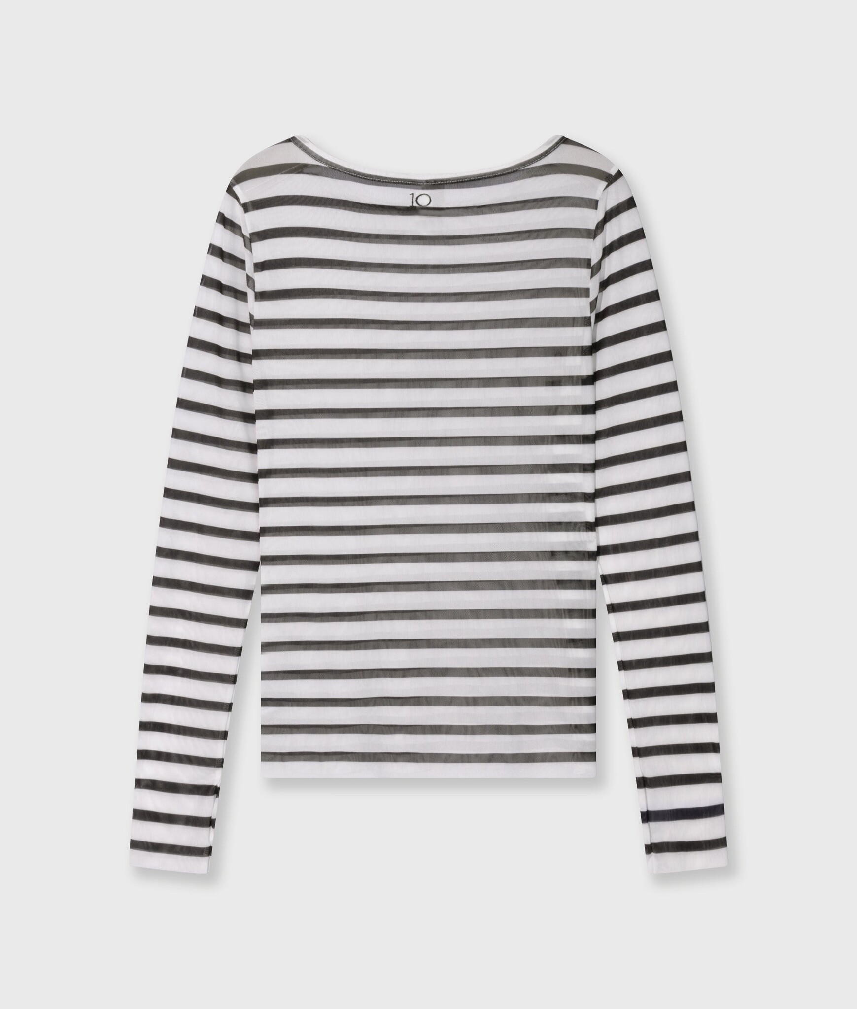 Slim fit transparante top gemaakt van mesh. De top heeft een brede boothals, lange mouwen met duimsgaten, raw edge afgewerkte zoom en mouwen en een geborduurd '10' logo op de rug.