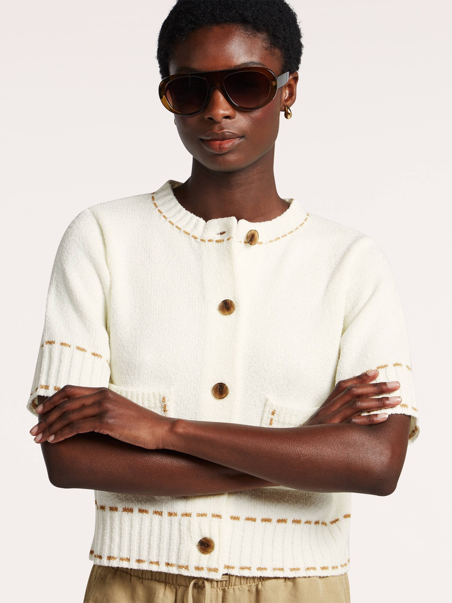 Kort regular fit vest gemaakt van crepe garen. Het vest heeft 2 kleine zakken op het voorpand en is afgewerkt met fancy contrast steken.