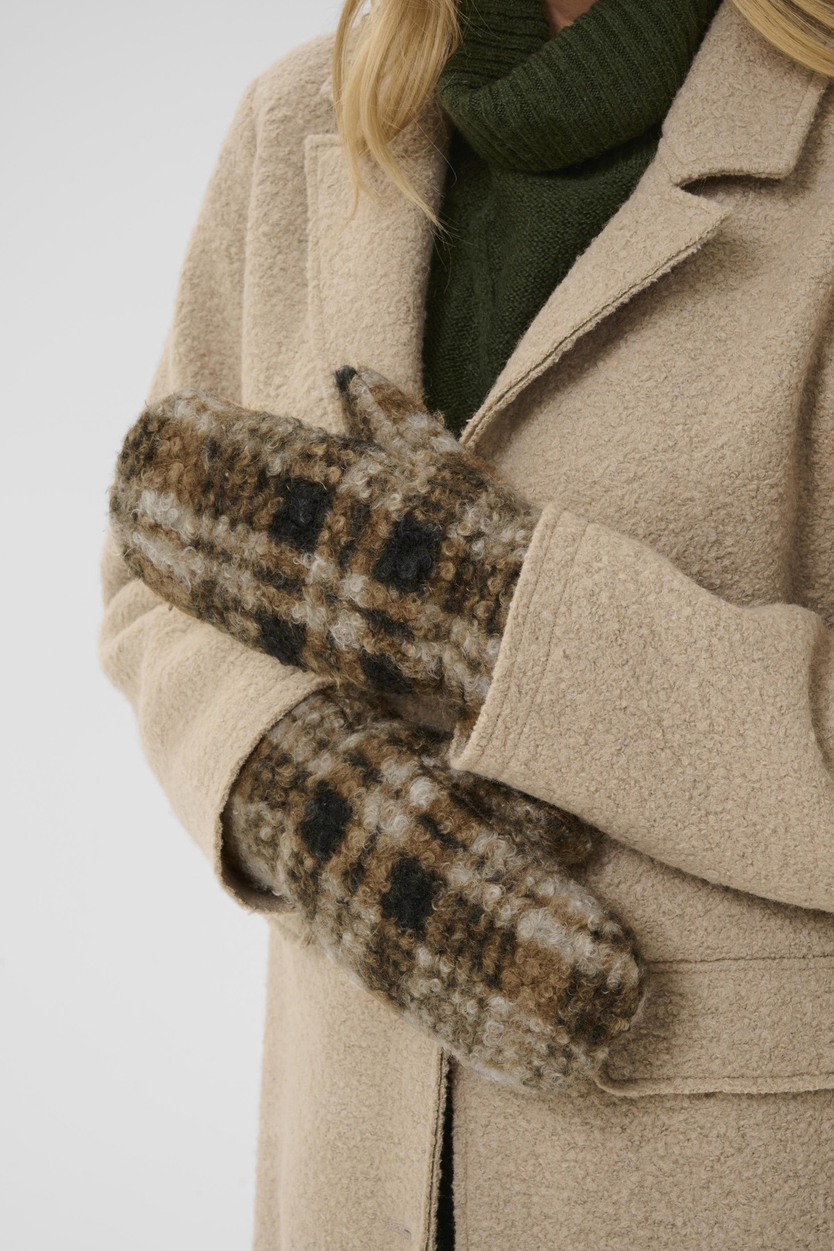 Gevoerde geruite wanten. Combineer het met de bijpassende Oms cape.