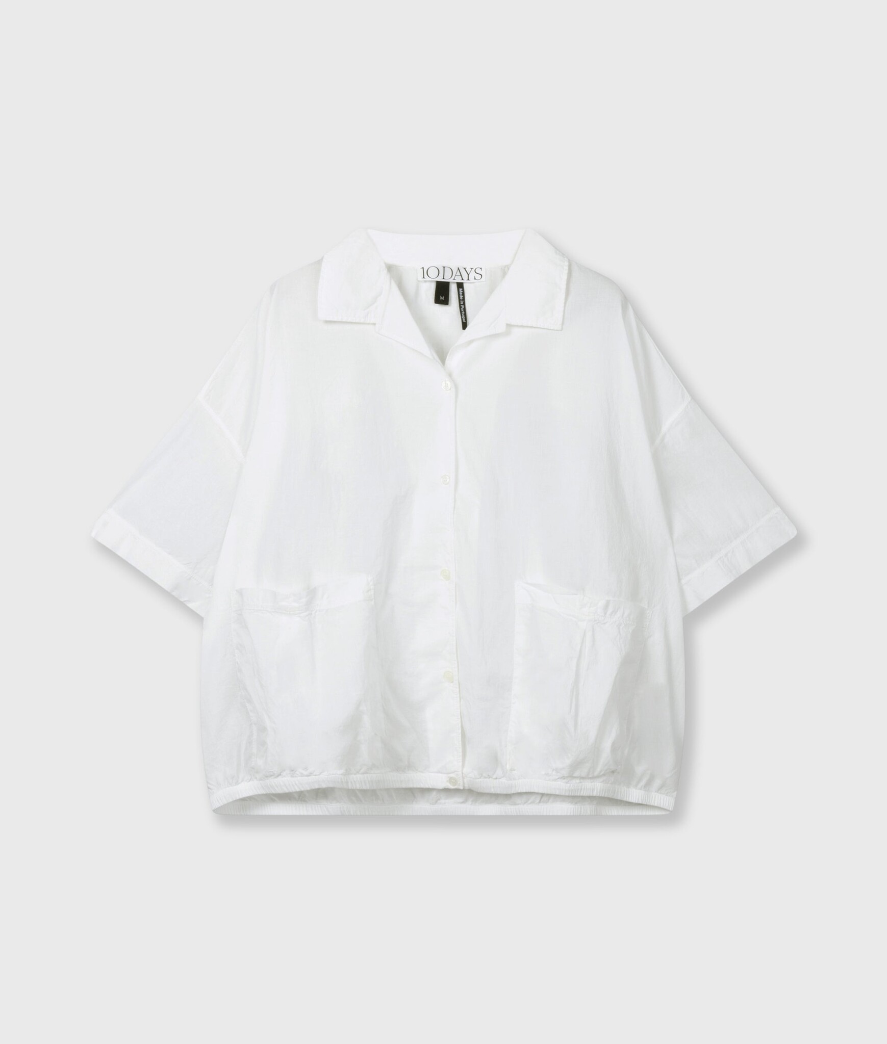 Oversized blouse met halflange mouwen, gemaakt van zachte biologisch katoenen poplin. Het shirt heeft een elastische zoom, een knoopsluiting, een opgestikte zak op de linker voorkant met een geborduurd ‘10’ monogram en een transparant labeltje op de rug.