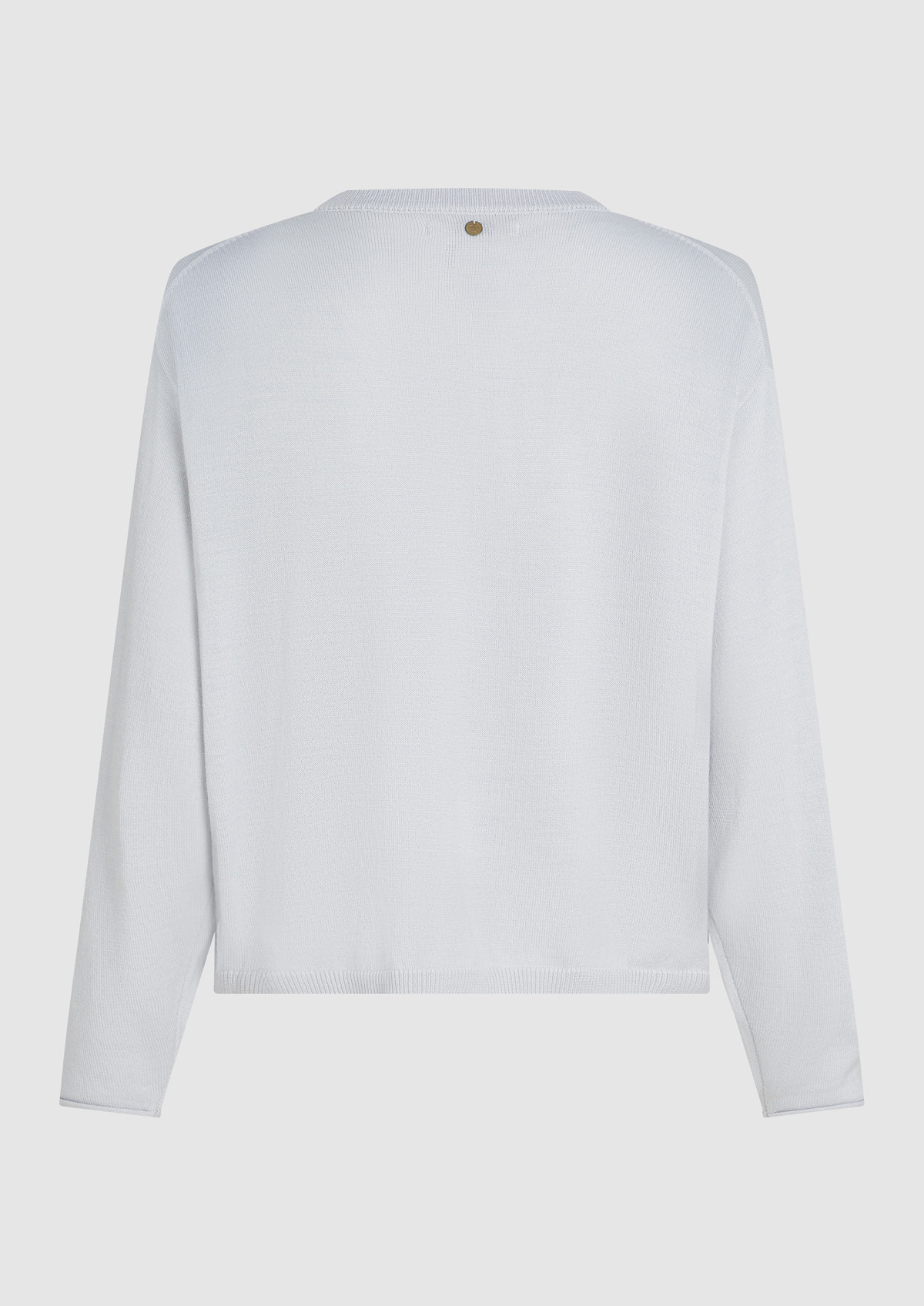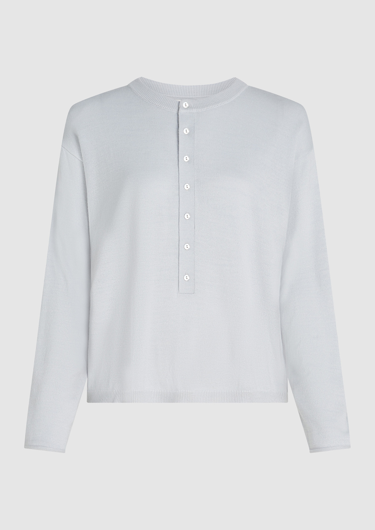 Loose fit licht gebreide trui met een parelmoer knoopsluiting. De trui heeft een ronde hals, een dikke boord aan de onderkant en omgekrulde mouwuiteinden.