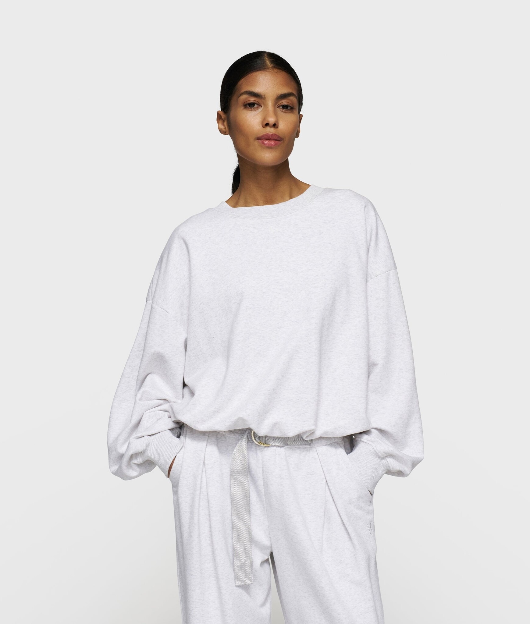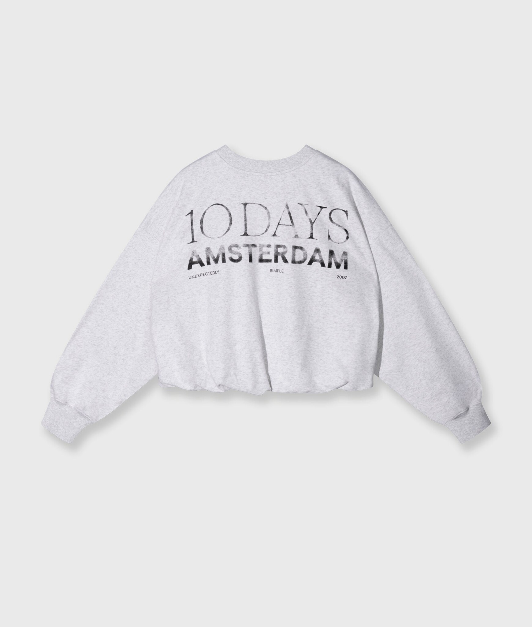 Oversized sweater gemaakt van lichte fleece en gevoerd met katoenen jersey. De trui heeft ribgebreide boorden, plooien aan de onderkant en een grote ‘10DAYS’ waterbase print op de achterkant.