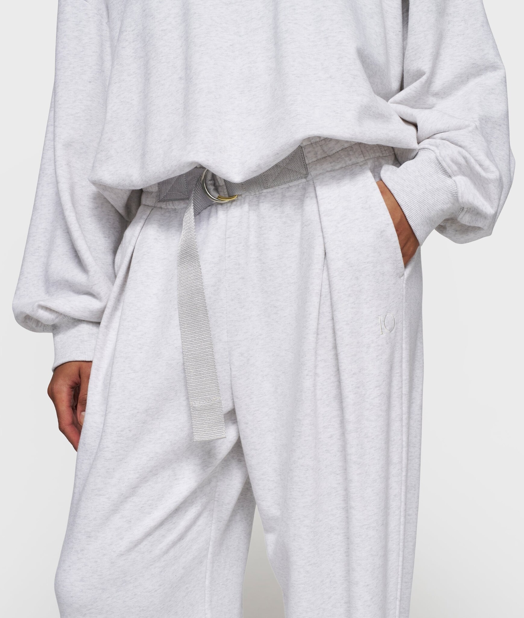 Relaxed fit jogger gemaakt van lichte fleece. De broek heeft een middelhoge elastische tailleband met een opgestikt riemdetail, schuine steekzakken, twee fake achterzakken en een geborduurd '10' monogram op de linker broekspijp.