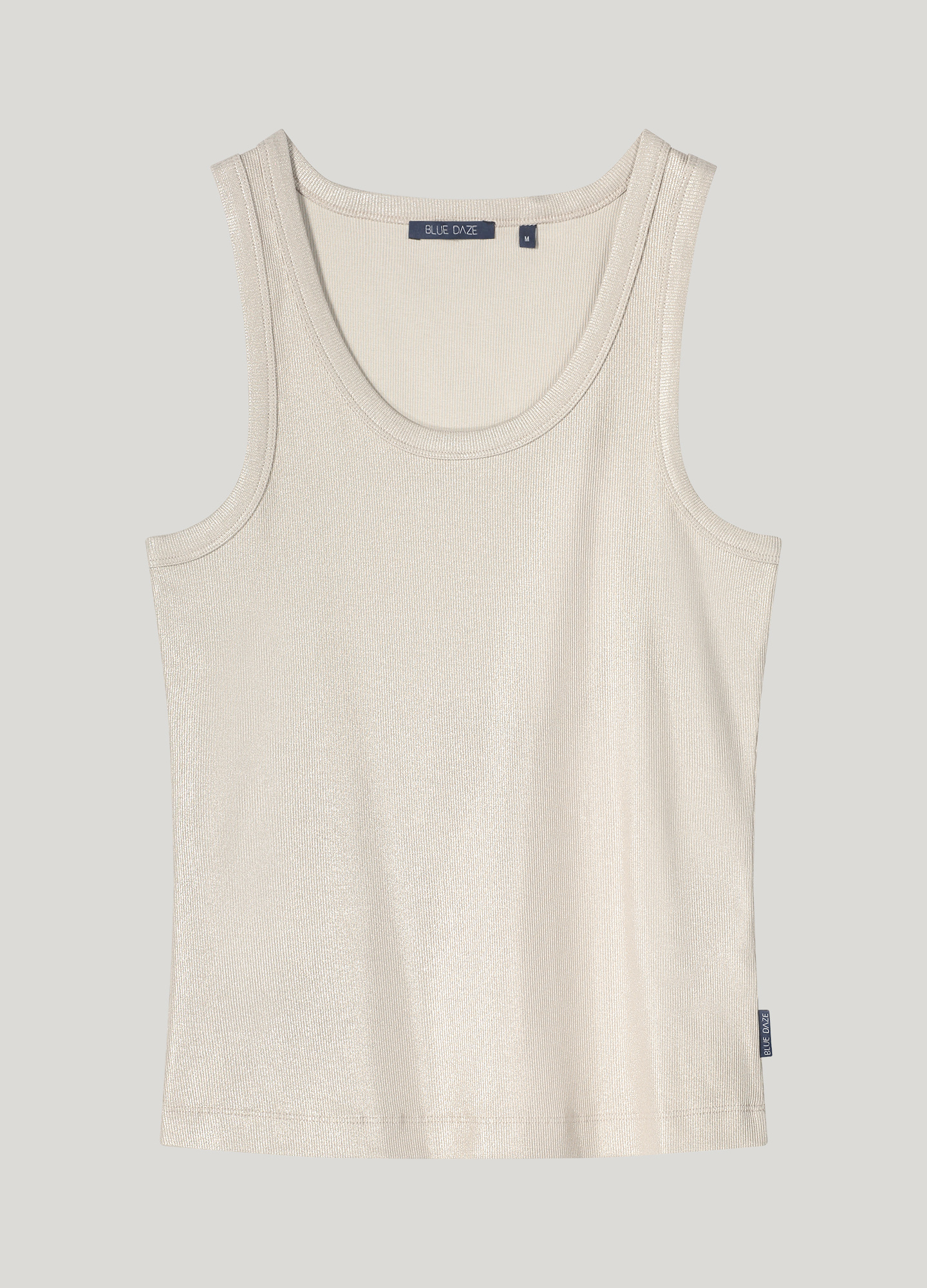 Comfortabele slim fit tanktop gemaakt van katoenen rib stof met een beetje stretch. In de stof zit een foil print, die zorgt voor een subtiele glans.