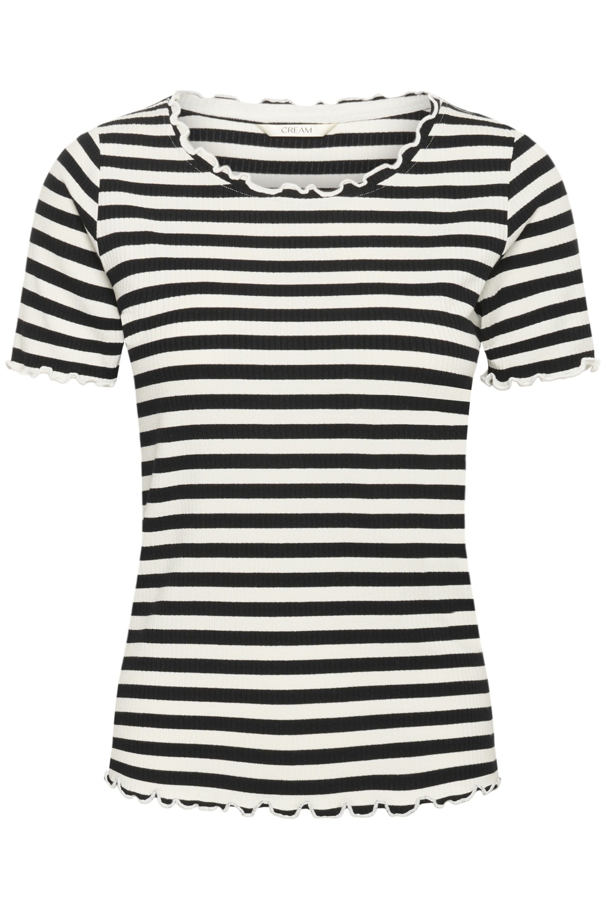 Regular fit T-shirt in een comfortabele stretch ribbelstof. De top heeft korte mouwen, een ronde halslijn en subtiele golfranden.