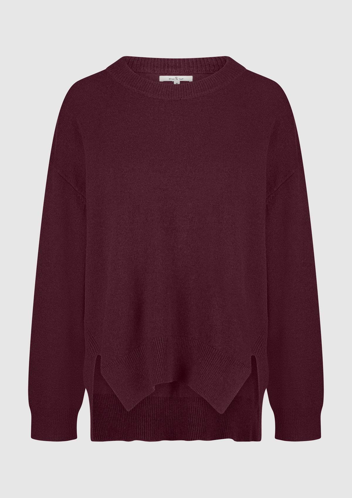 Regular fit trui met een ronde hals, verlaagde schouders, splitten aan de zijkant en een achterkant die langer is dan de voorkant. Combineer het met de Imara broek.
