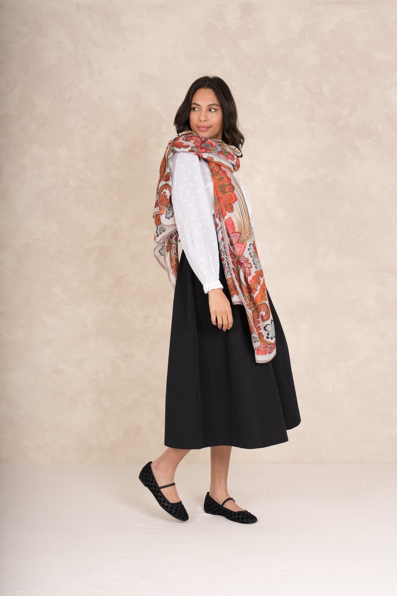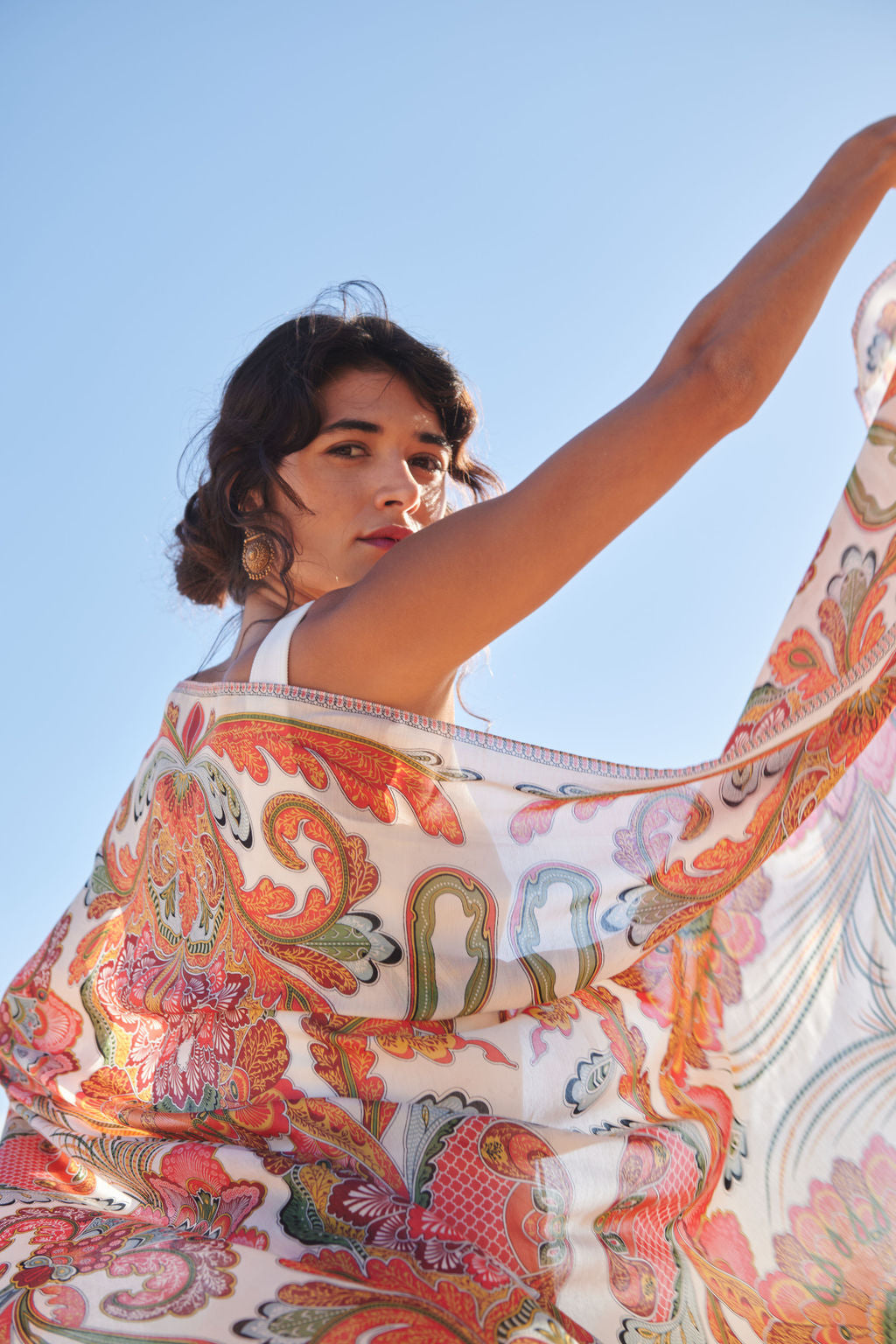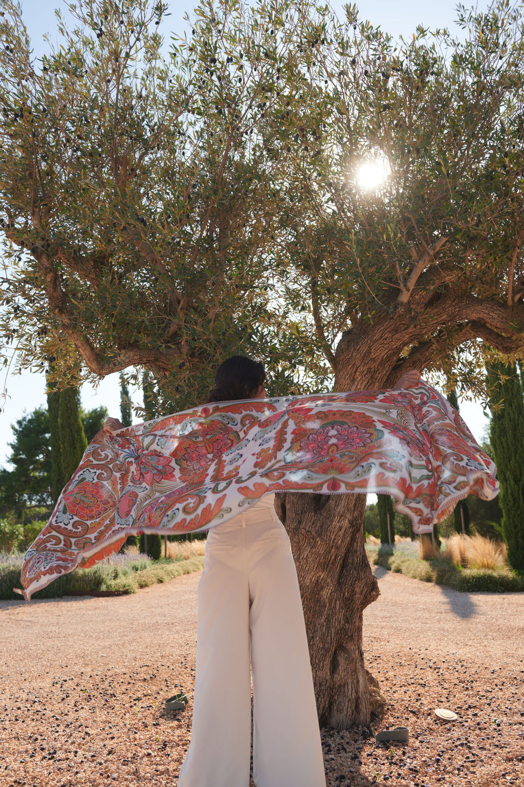 • Mooie rechthoekige sjaal met een handgetekend dessin, gemaakt van een heerlijk zacht lichtgewicht en duurzaam materiaal wat aanvoelt als zijde.