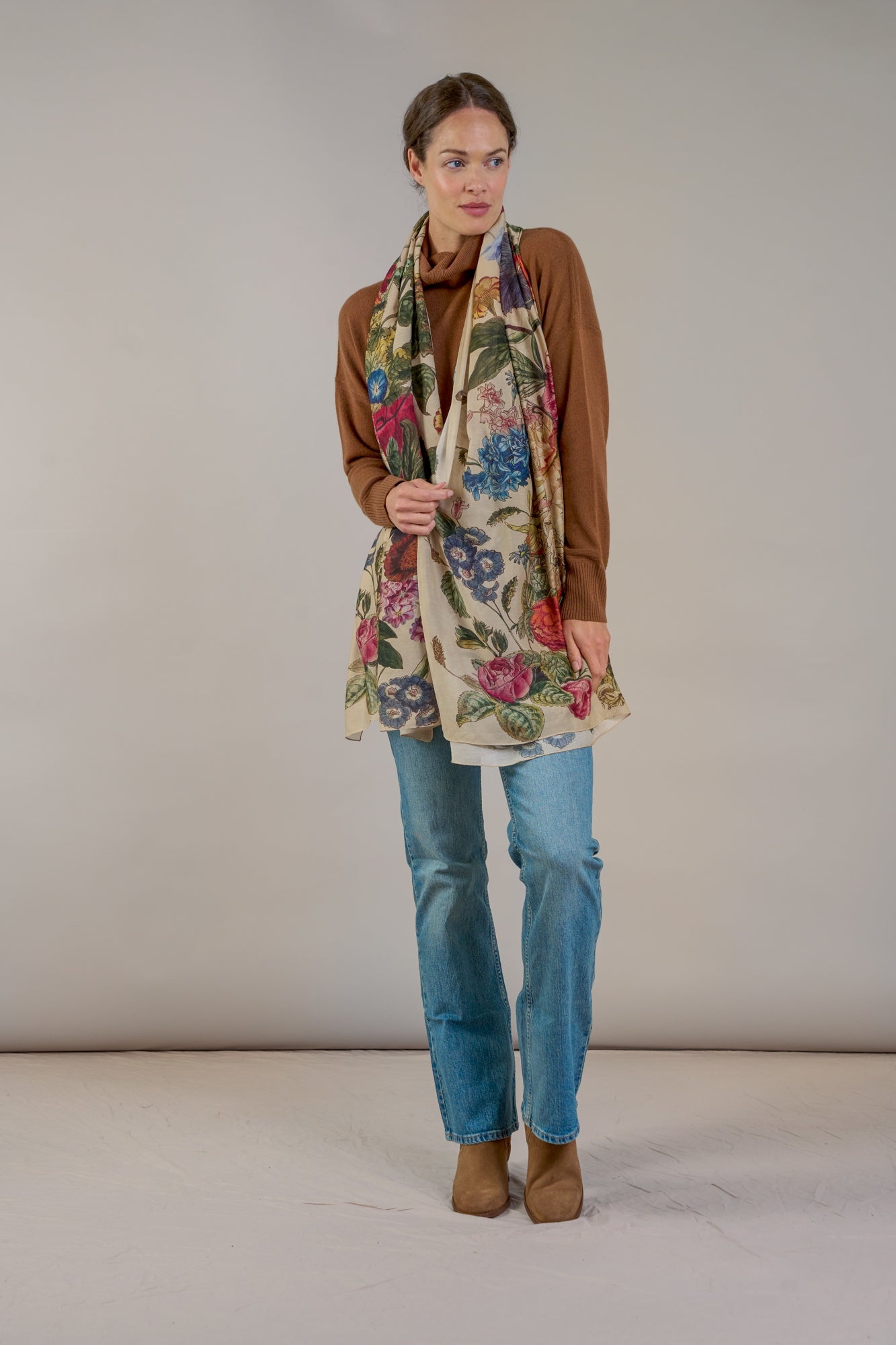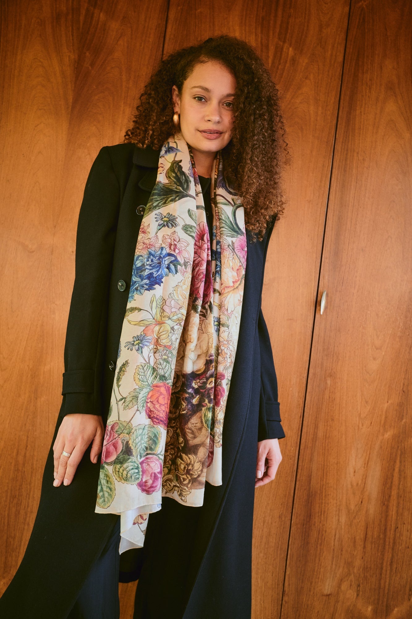 • Mooie rechthoekige sjaal met een handgetekend dessin, gemaakt van een heerlijk zacht lichtgewicht en duurzaam materiaal wat aanvoelt als zijde.