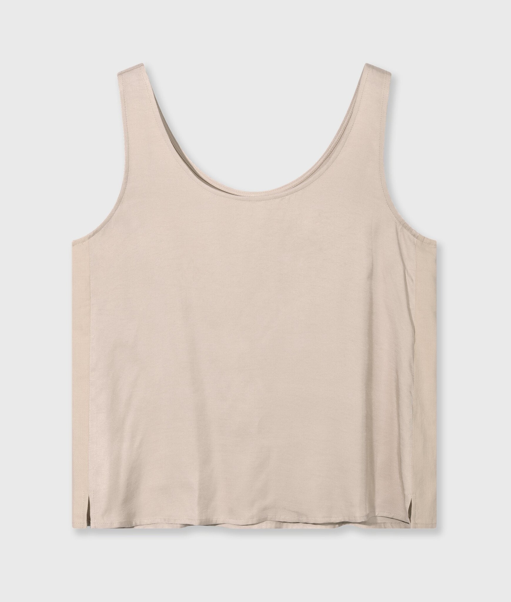 Relaxed fit tank top gemaakt van glanzend viscose. De top heeft pique katoenen zijpanelen, twee kleine splitten aan de zijkant en een geborduurd '10' monogram op de rug. Combineer het met de bijpassende rok.