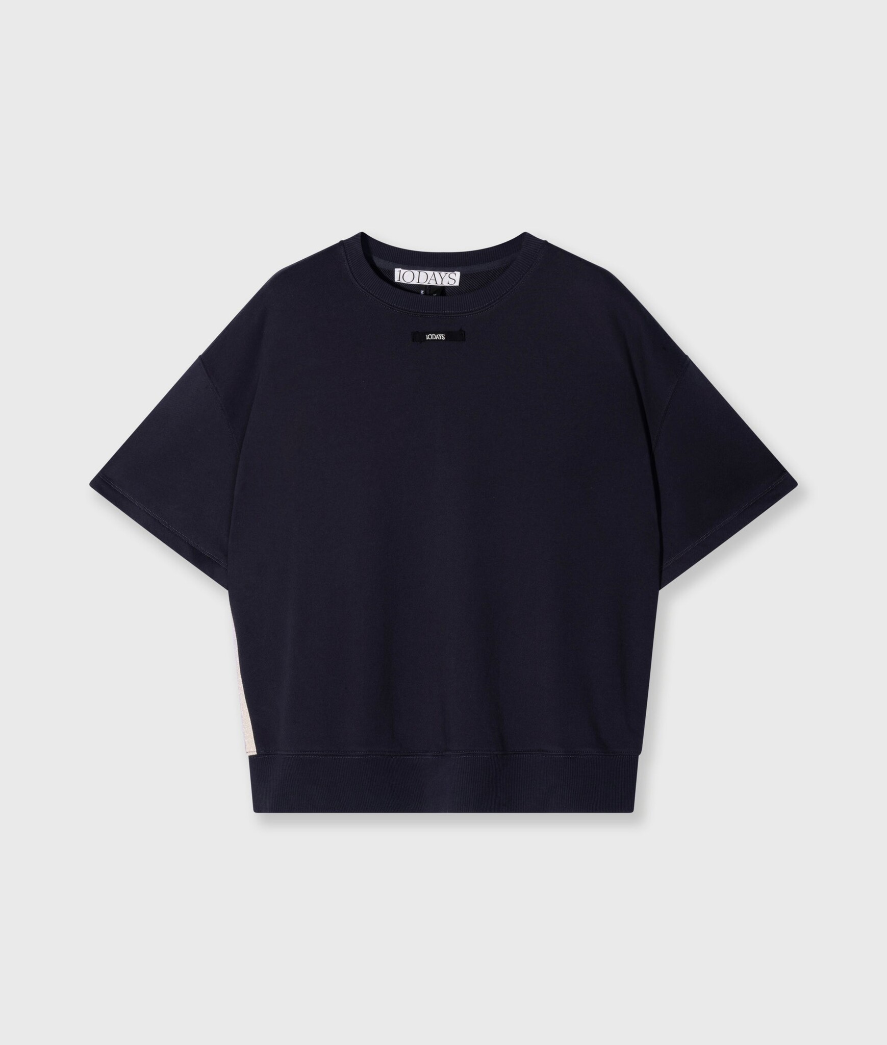 Relaxed fit sweater gemaakt van zachte katoenen fleece. De trui heeft korte mouwen, een ronde ribgebreide hals en zoom, een lage schouderinzet, tapestroken langs de zijnaad en een geborduurd '10' monogram op de borst.
