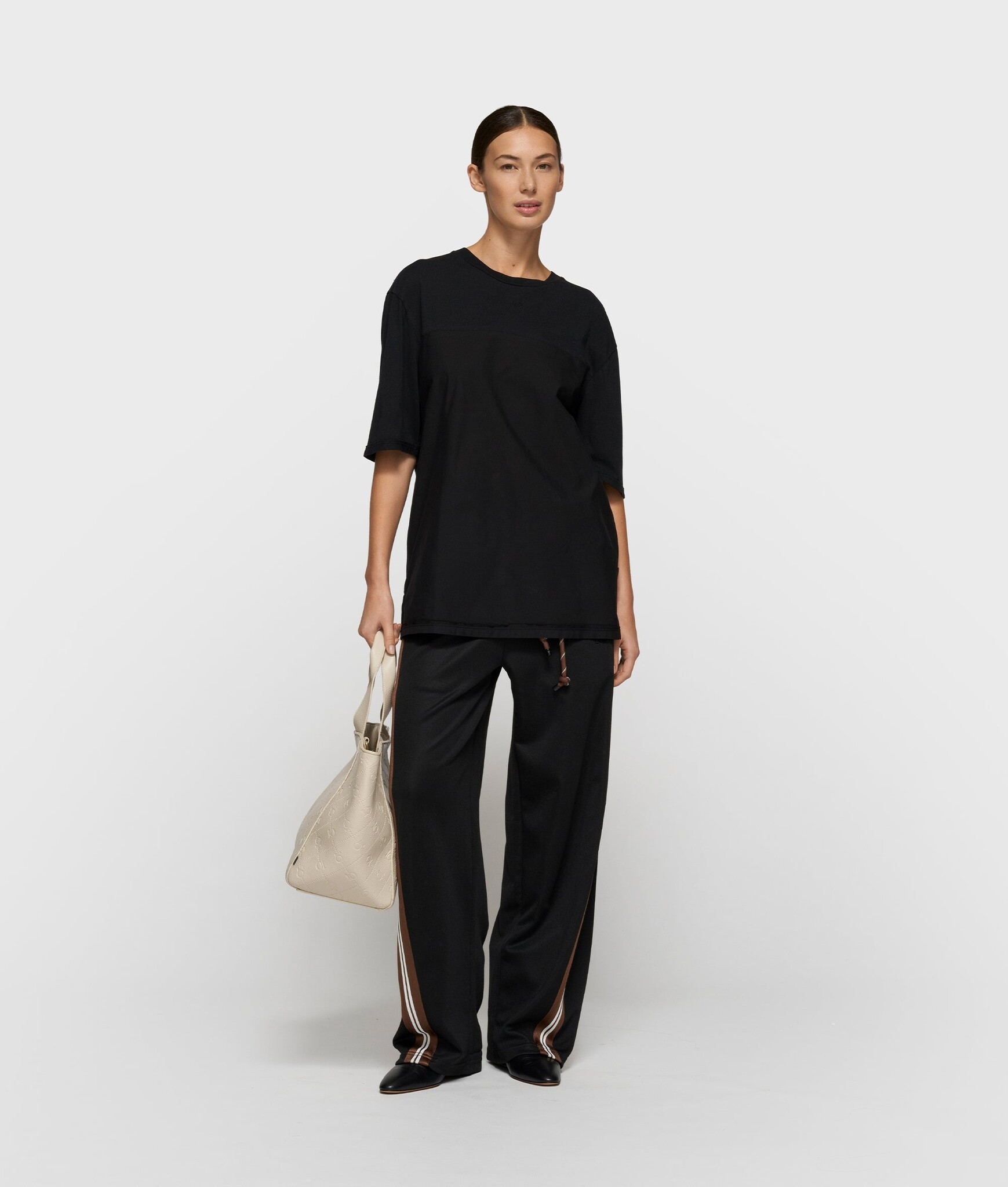Relaxed fit T-shirt met korte mouwen, gemaakt van zachte katoenen jersey en een poplin inzet onder aan de voorkant. De top heeft een ronde hals met ribdetails en een geborduurd '10' monogram op de borst.