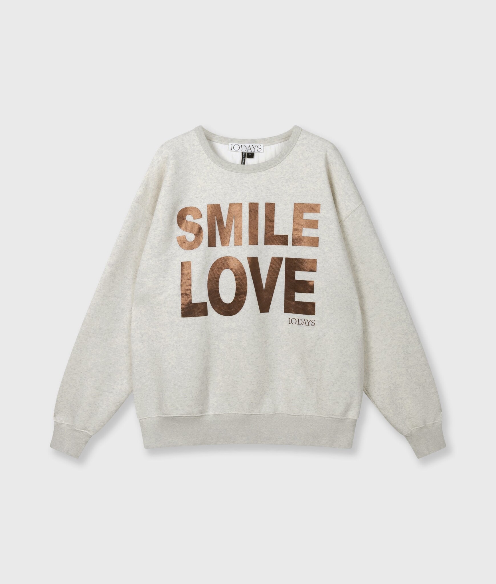 Oversized sweater, gemaakt van dik geborsteld fleece. De trui heeft een 'SMILE LOVE 10DAYS' foilprint op de voorkant, een lage schouderinzet, een ronde hals, ribgebreide boorden en een 'SMILE LOVE 10DAYS' label op de achterkant.