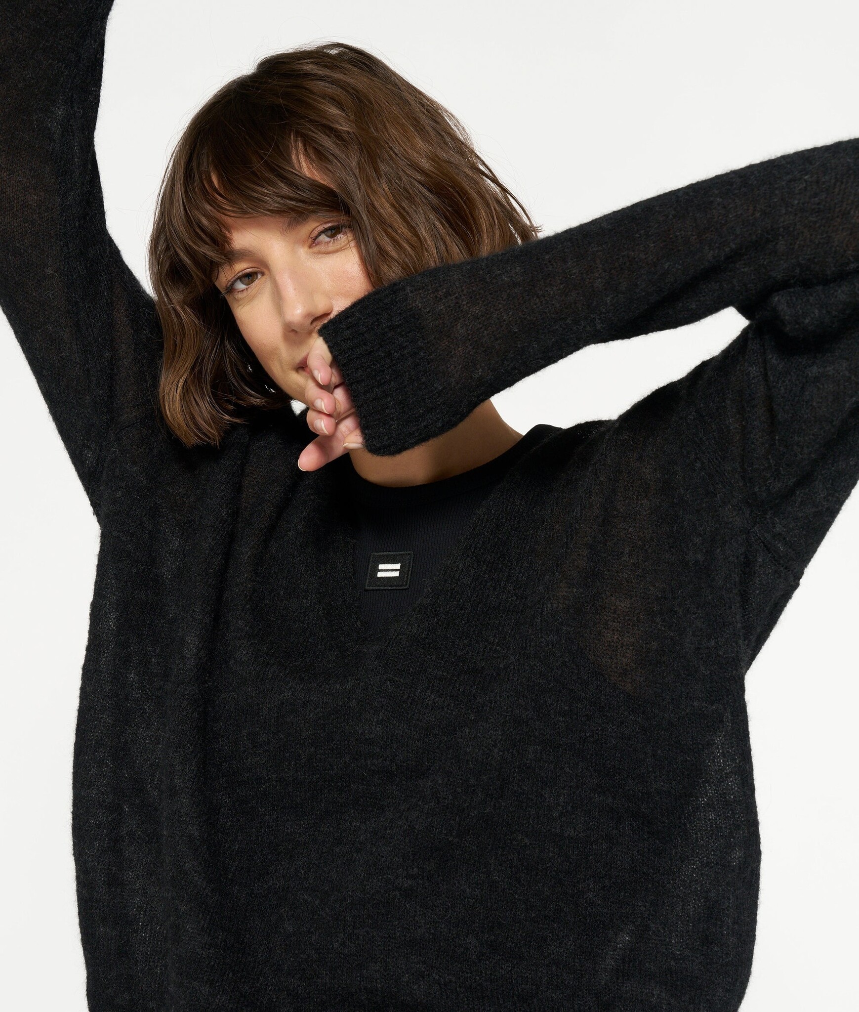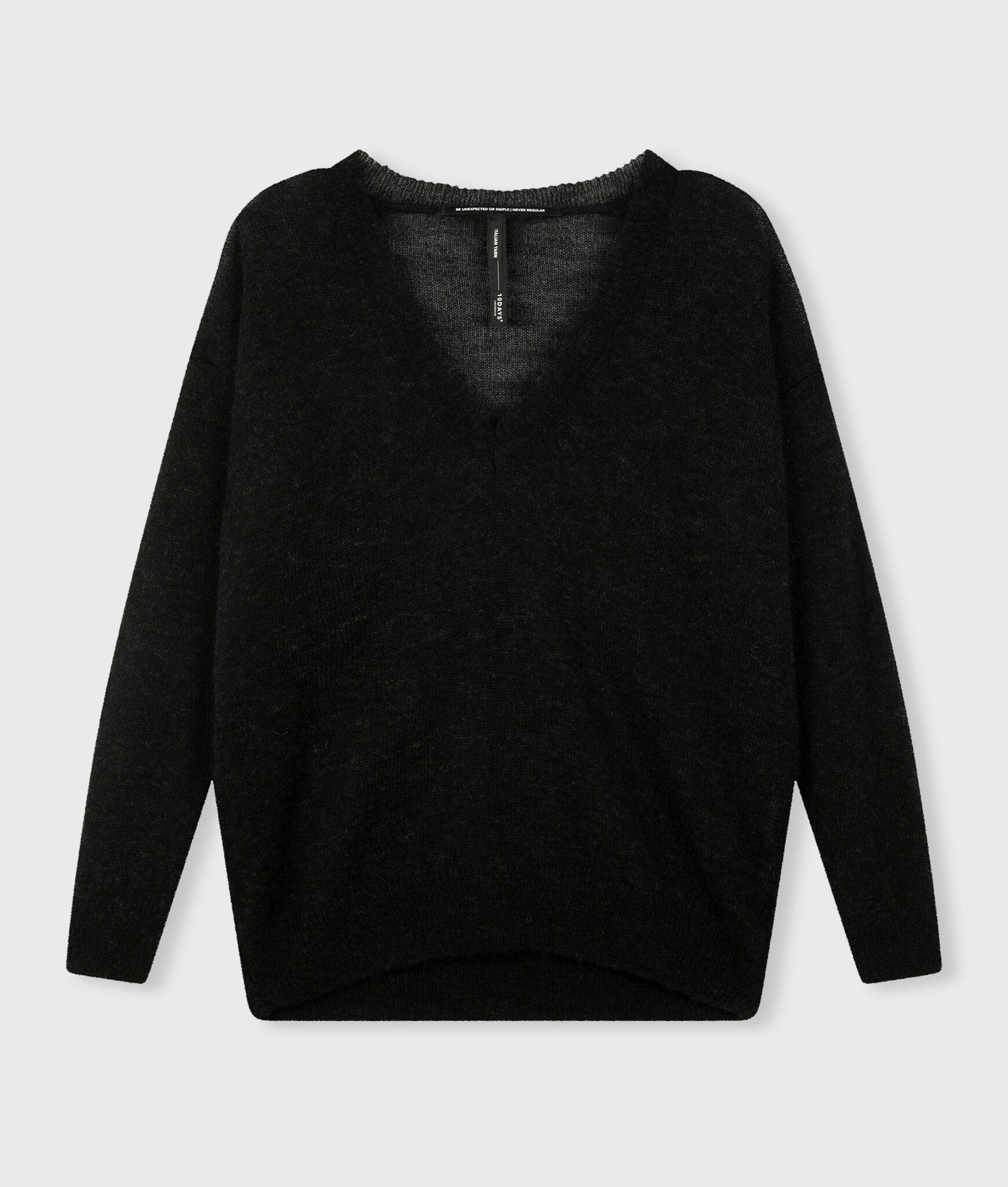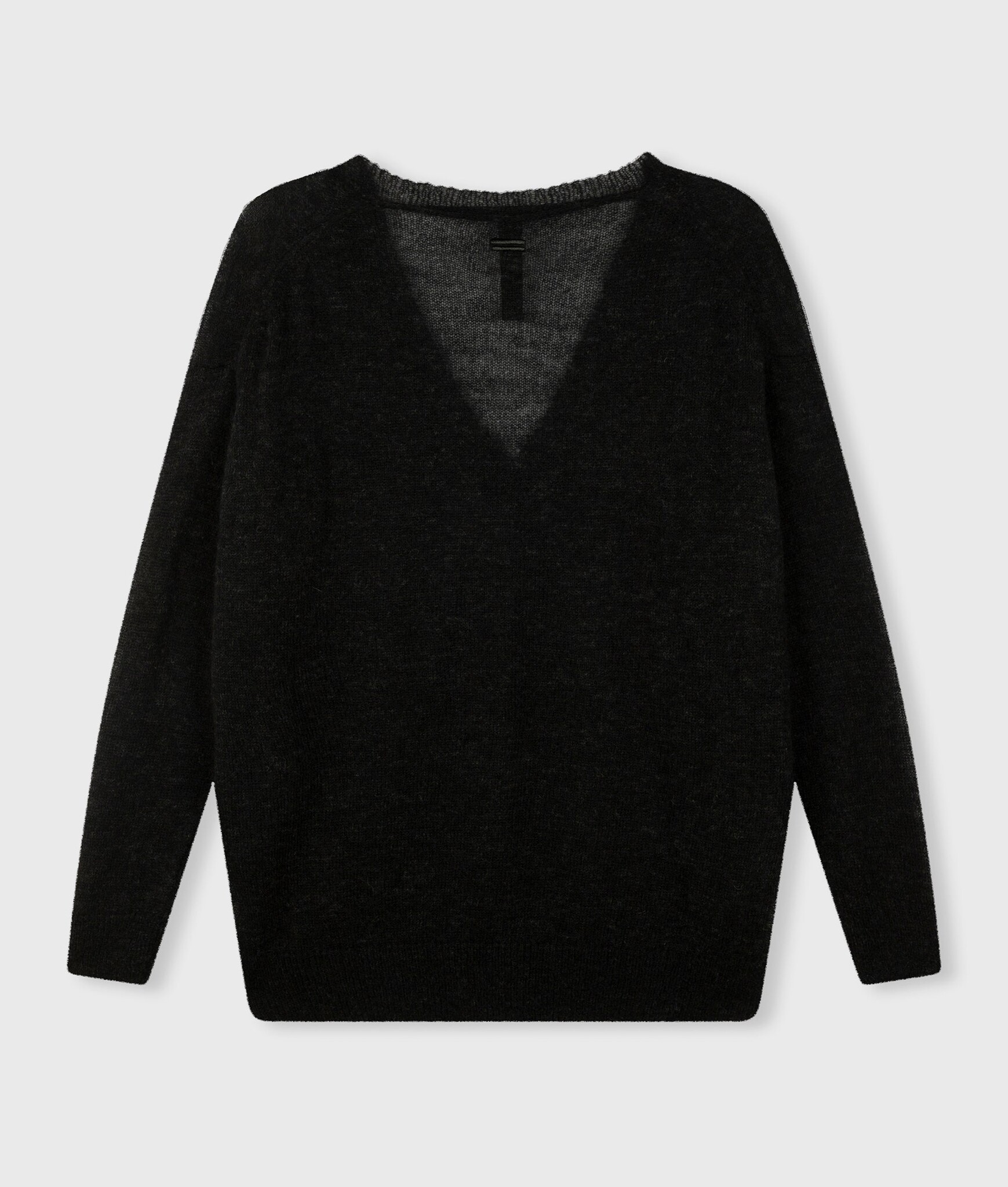 Relaxed fit fijngebreide sweater gemaakt van een zachte wolblend met alpaca. De trui heeft een V-hals, ribgebreide boorden en een geborduurd mini stripes logo op de rug, net onder de nek.