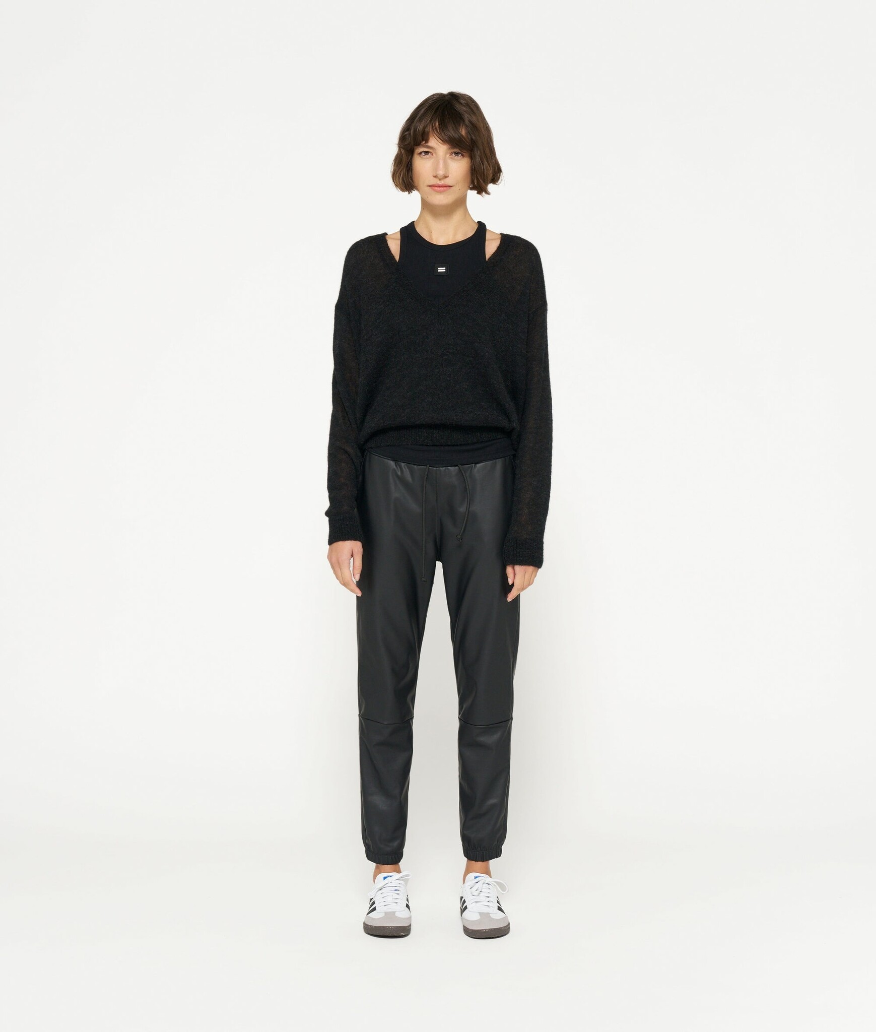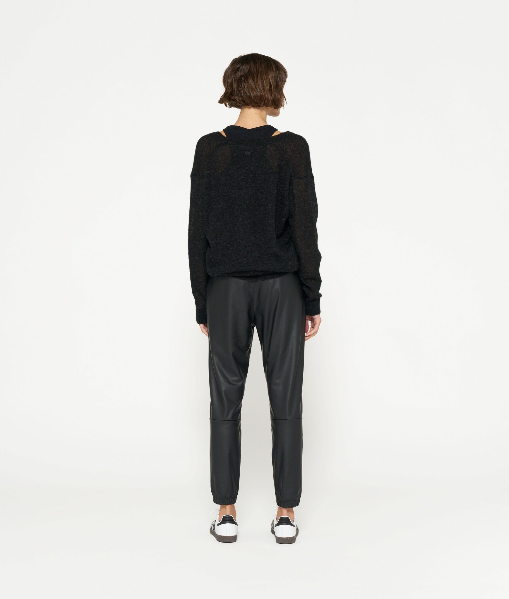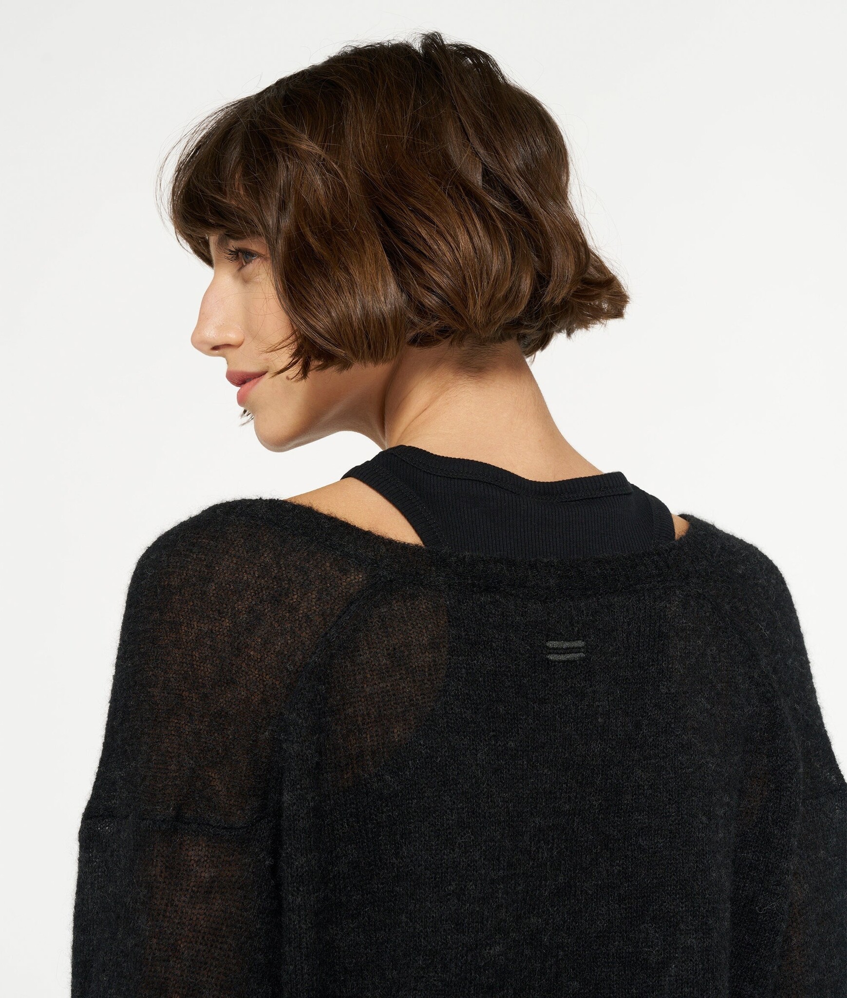 Relaxed fit fijngebreide sweater gemaakt van een zachte wolblend met alpaca. De trui heeft een V-hals, ribgebreide boorden en een geborduurd mini stripes logo op de rug, net onder de nek.