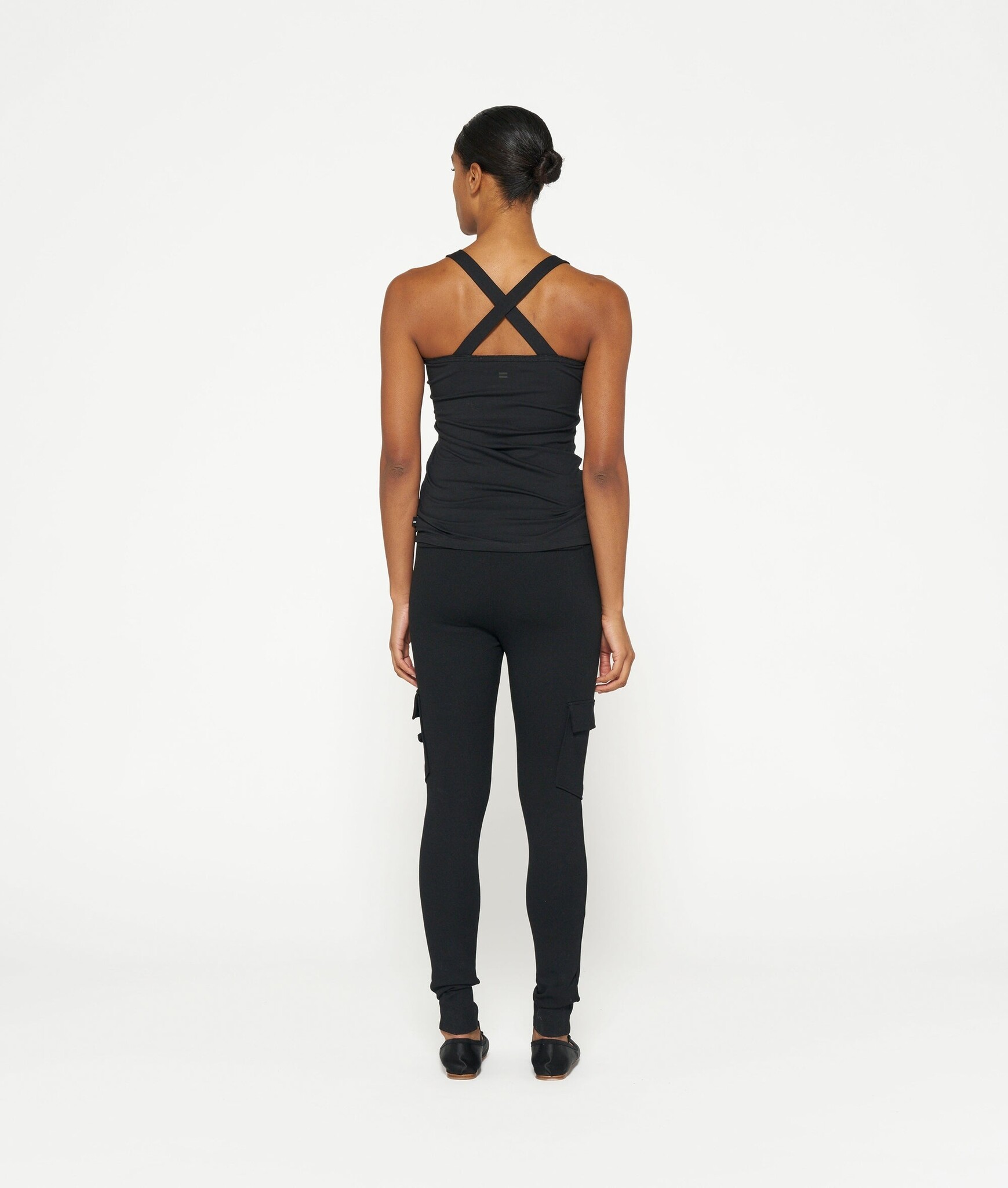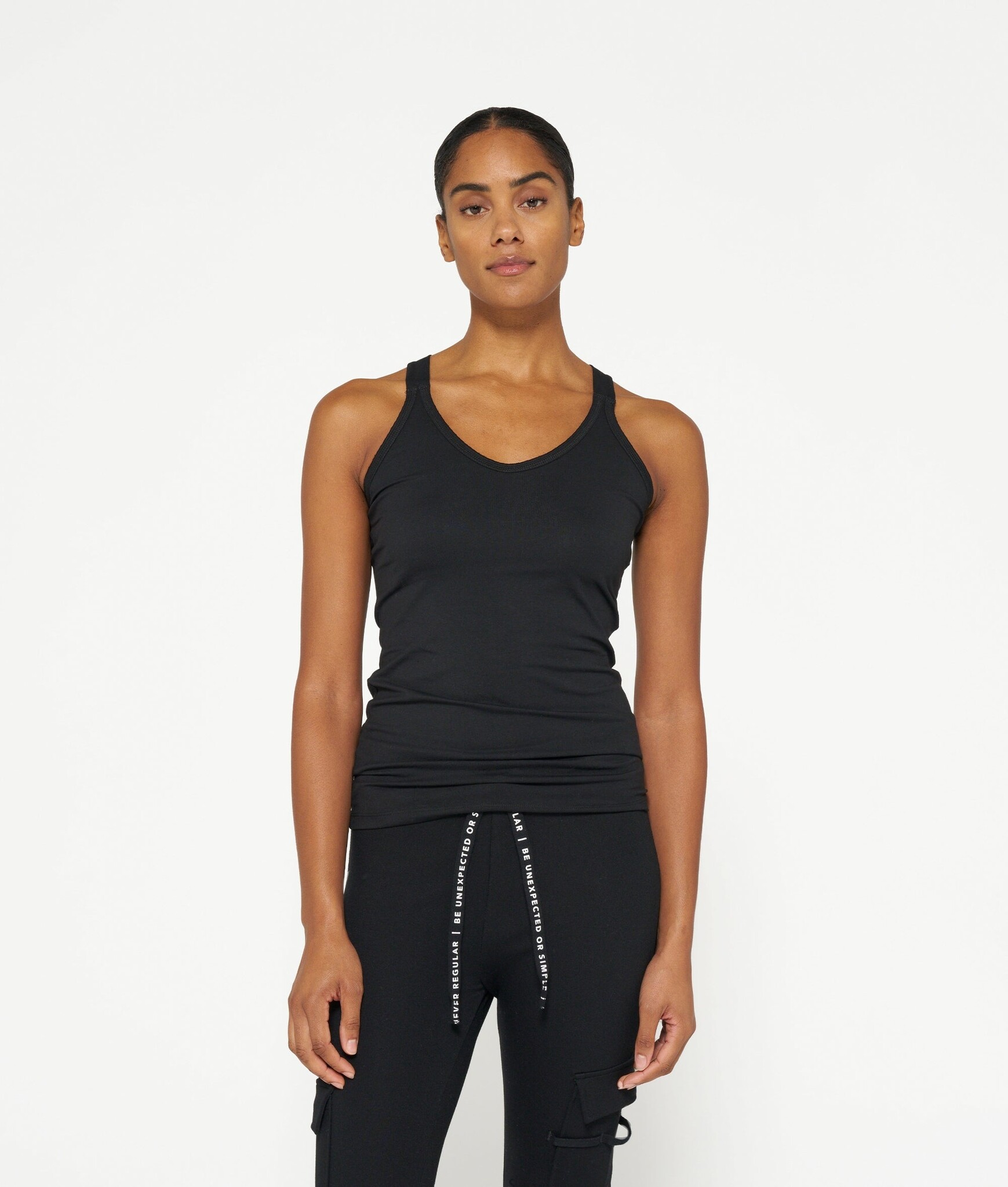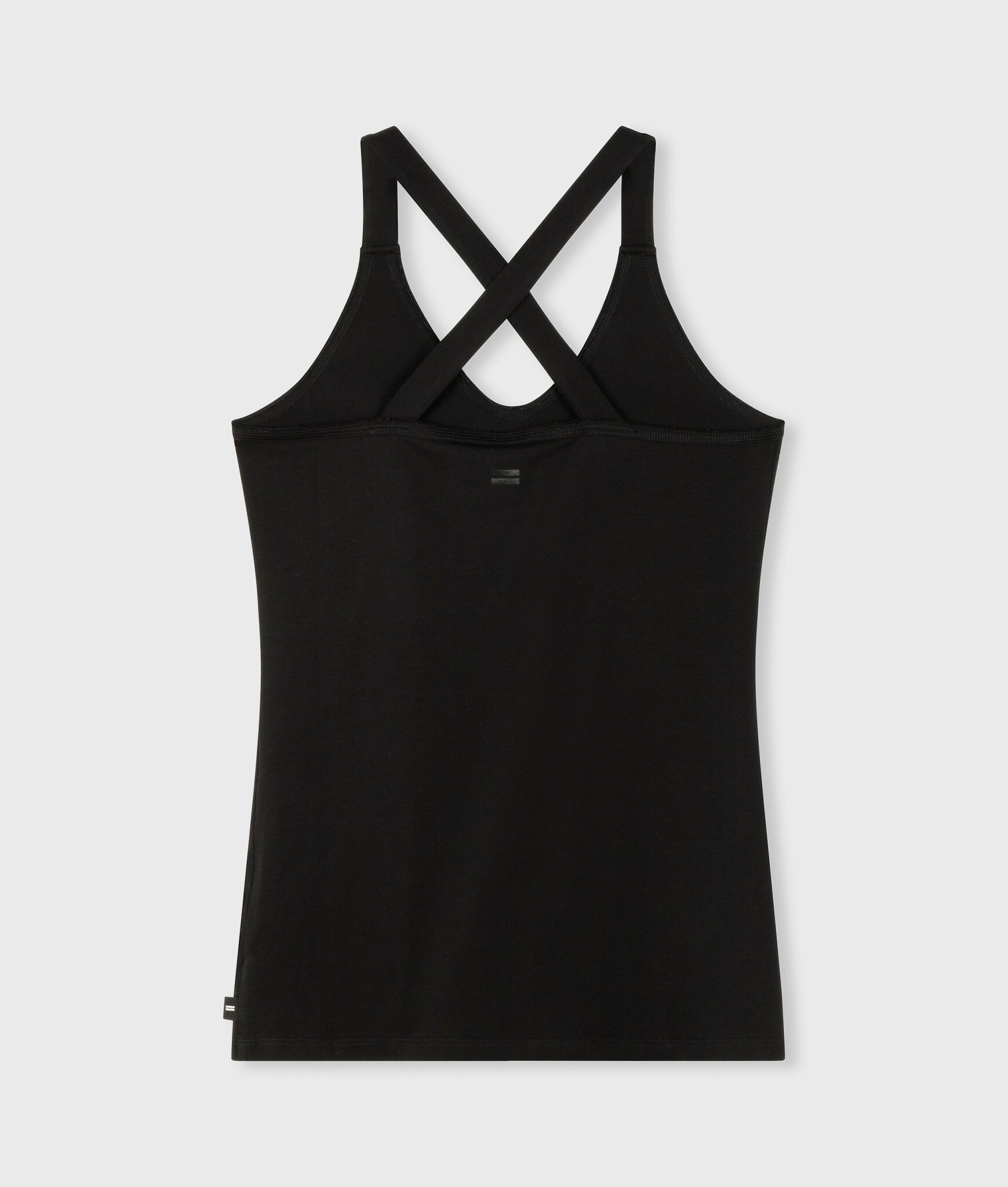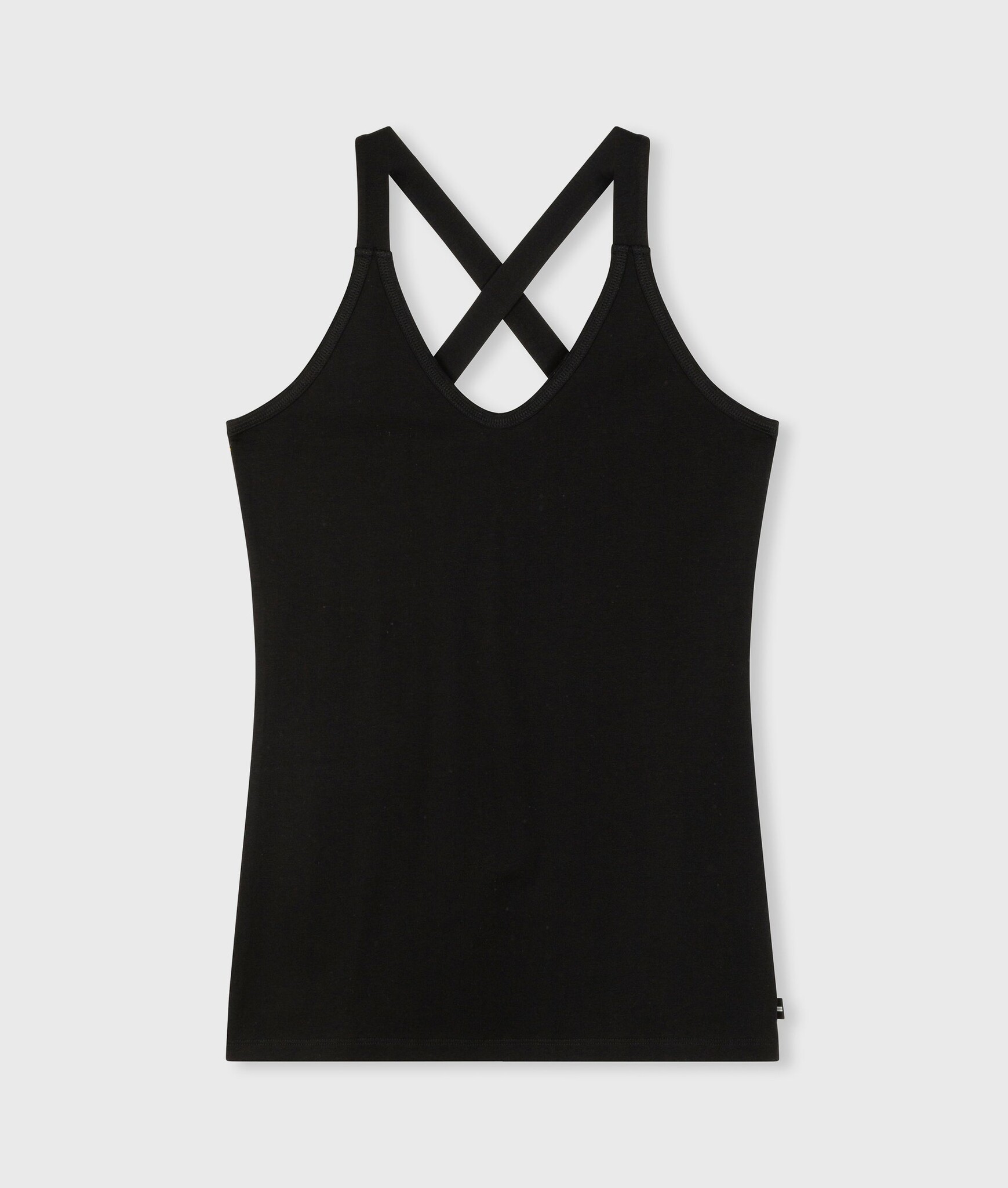 Slim fit singlet top met gekruiste bandjes achter, gemaakt van comfortabel jersey. De wrapper heeft een vintage afwerking rond de hals en een zwart mini stripes logo op de rug.