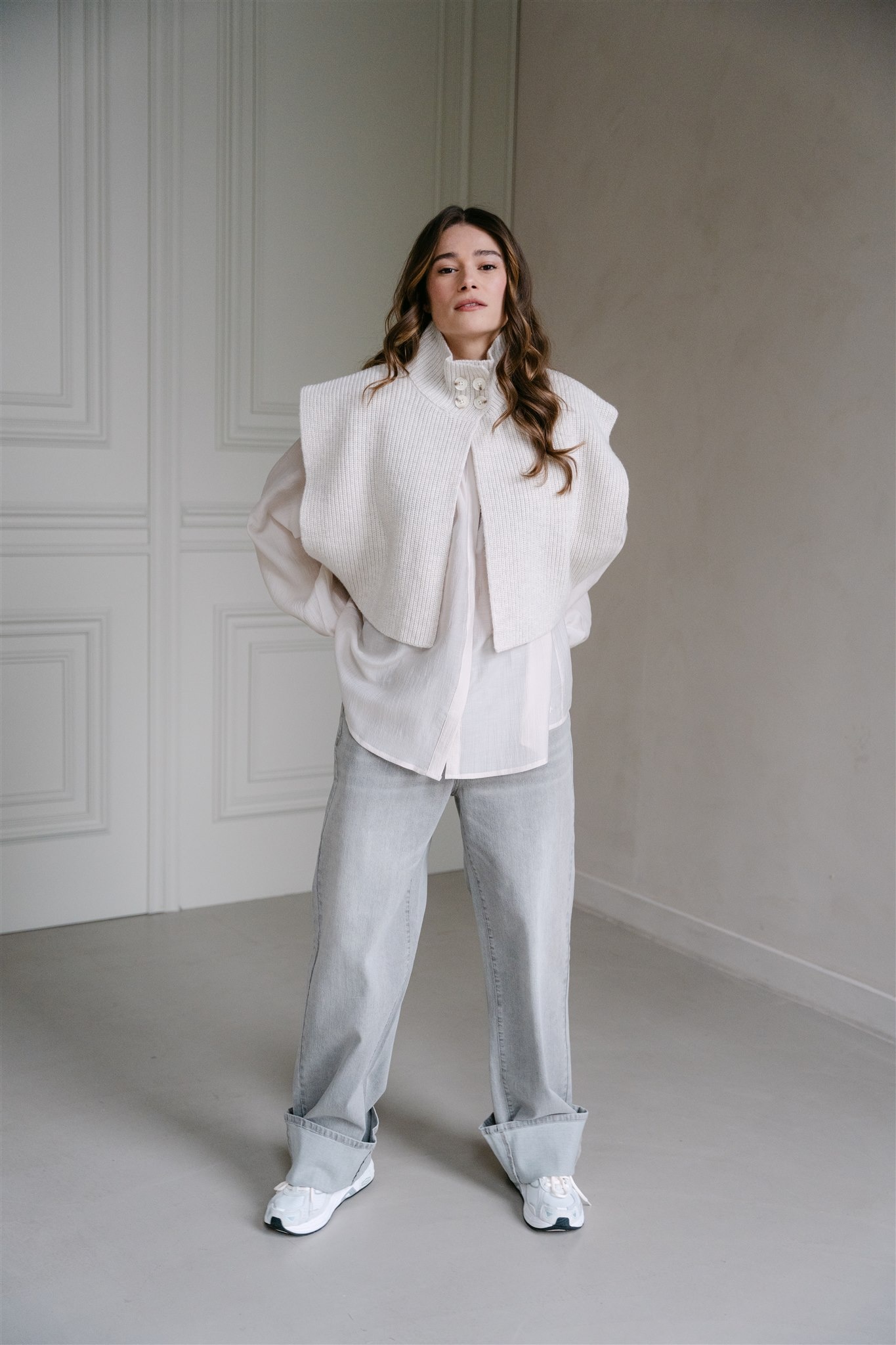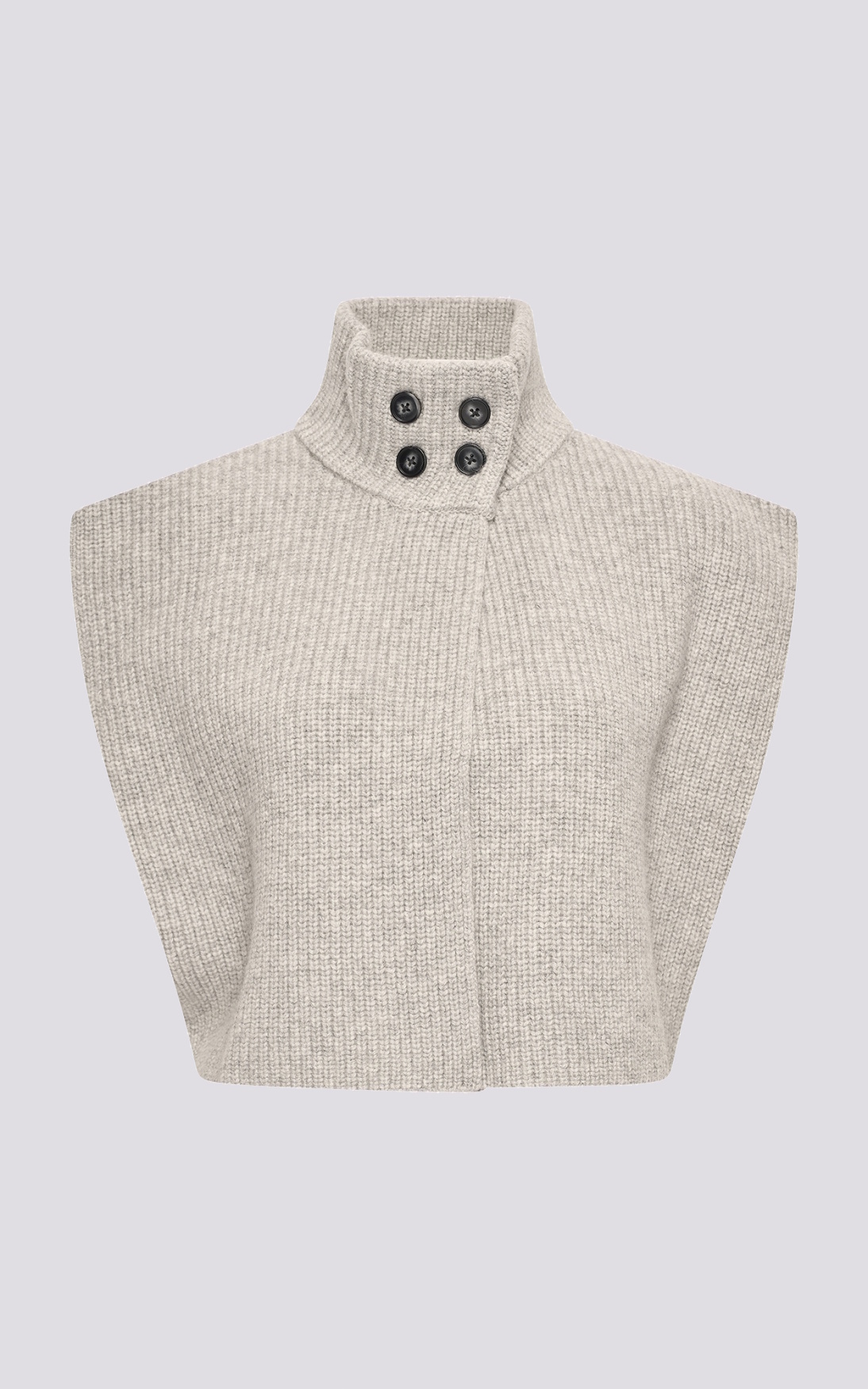• Mouwloos gilet met een grof gebreide structuur. Het vest heeft een opstaande kraag met knoopdetails. Draag ‘m open voor een nonchalante vibe of sluit de knopen voor een meer gedistingeerde look.