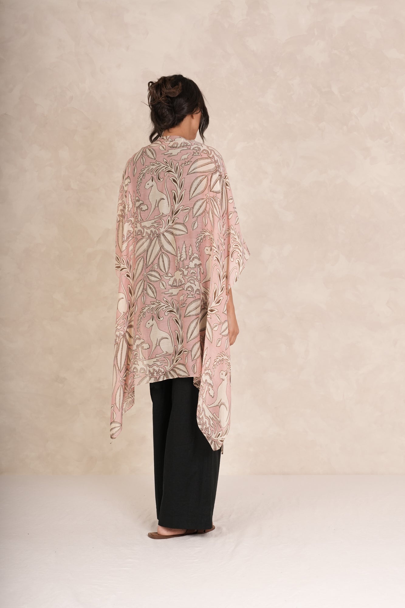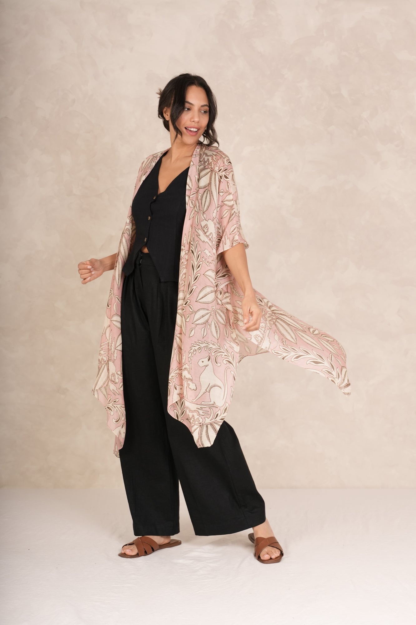 • Lichtgewicht overgooier, gemaakt van een heerlijk zacht en duurzaam materiaal wat aanvoelt als zijde. Ze is halflang met een open voorkant en wijde mouwen, perfect in de zomer over een jurk of broek of draag het op het strand over je badpak.
