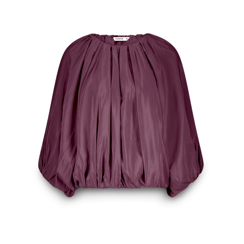 Boxy top gemaakt van een glanzende mix van katoen en viscose. De top is volledig gevoerd en heeft driekwartmouwen met een langere achterkant voor een pofeffect.