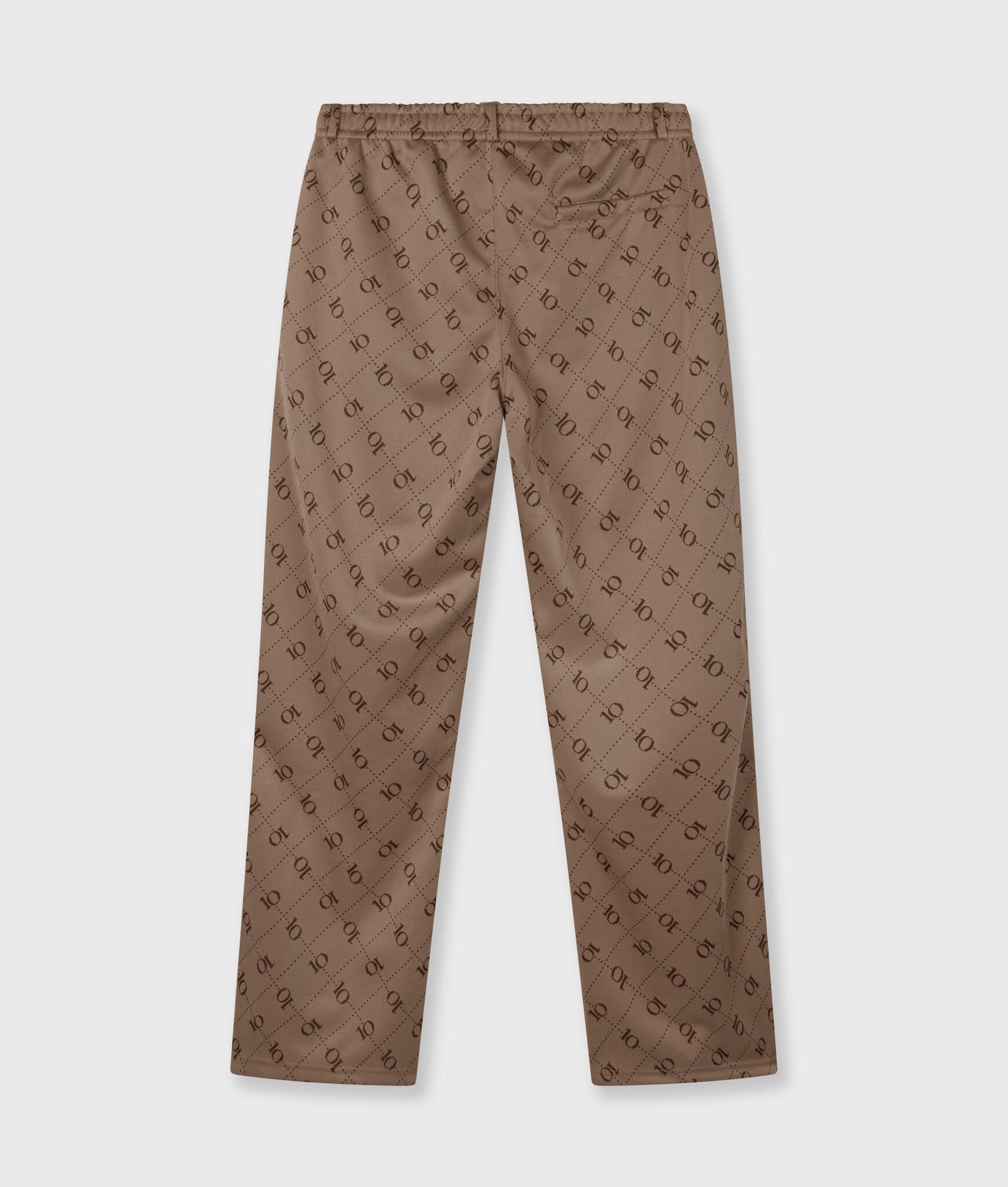 Regular fit pantalon met een '10' monogram print, gemaakt van zacht en soepel jacquard. De broek heeft een elastische tailleband met riemlussen, steekzakken, fijne pintuck-naden op de voorkant, een fake achterzak en tapestroken op de zijnaden.
