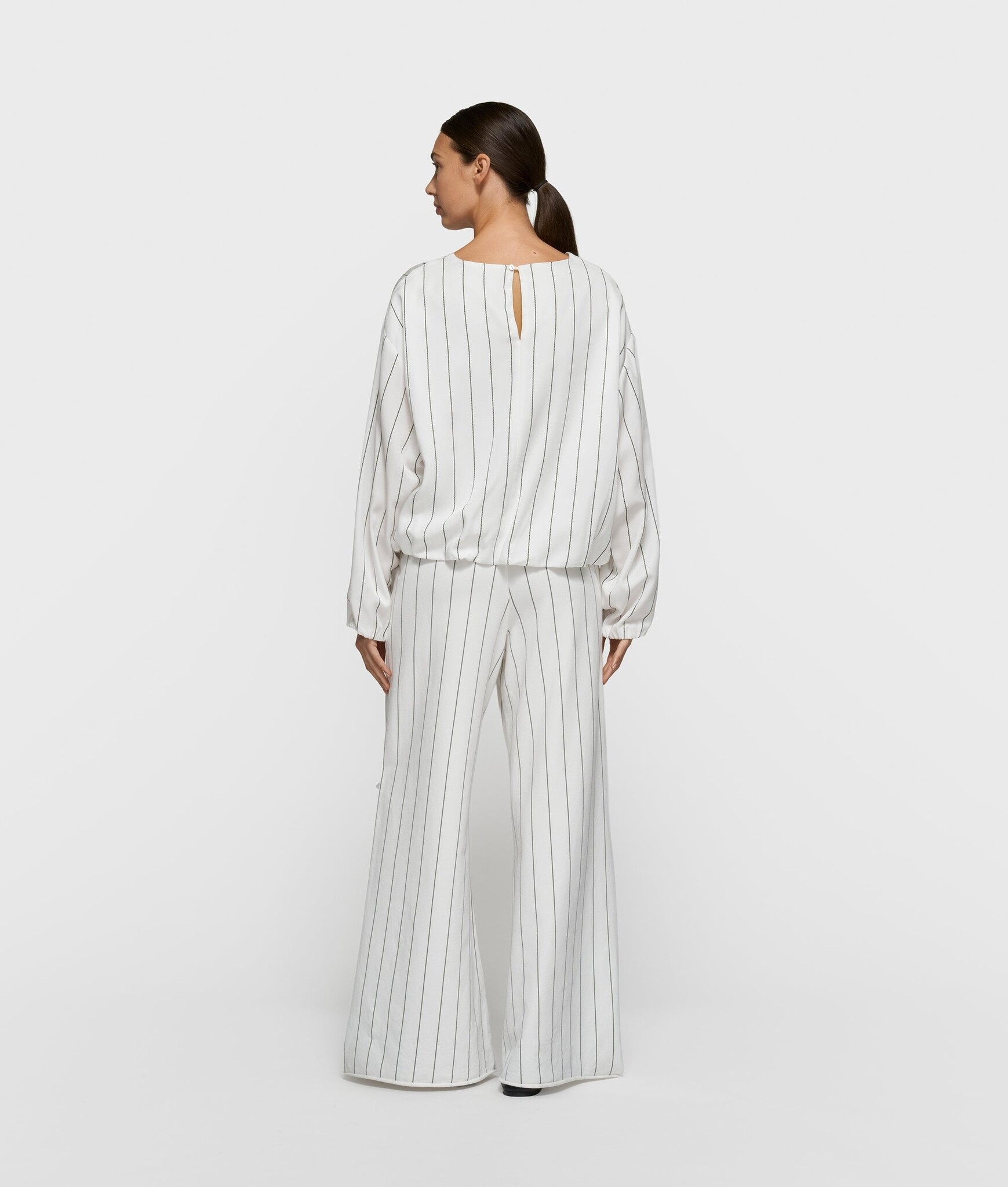 Oversized blouse met halflange mouwen, gemaakt van zachte biologisch katoenen poplin. Het shirt heeft een elastische zoom, een knoopsluiting, een opgestikte zak op de linker voorkant met een geborduurd ‘10’ monogram en een transparant labeltje op de rug.